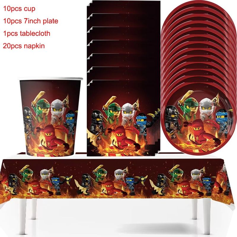 Bandai Ninja Themed Birthday Party Disposable Cup Plate Balloon Tablecloth Banner Cake Topper for Kids Baby Shower Decoation