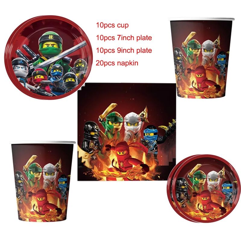 Bandai Ninja Themed Birthday Party Disposable Cup Plate Balloon Tablecloth Banner Cake Topper for Kids Baby Shower Decoation