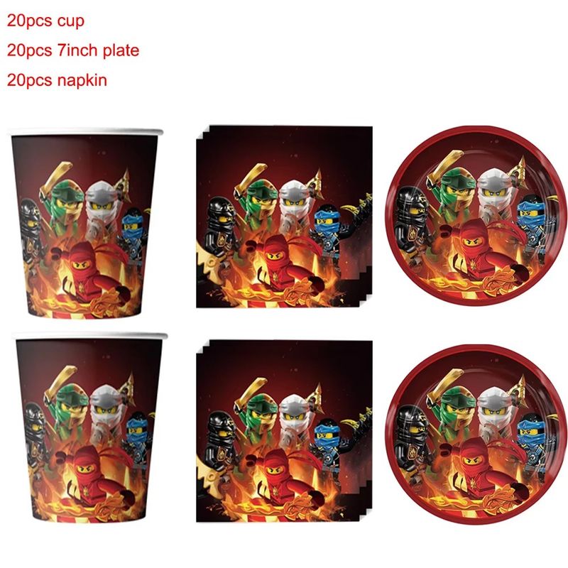 Bandai Ninja Themed Birthday Party Disposable Cup Plate Balloon Tablecloth Banner Cake Topper for Kids Baby Shower Decoation