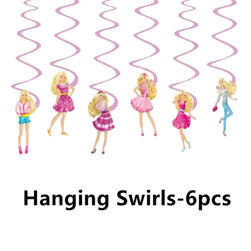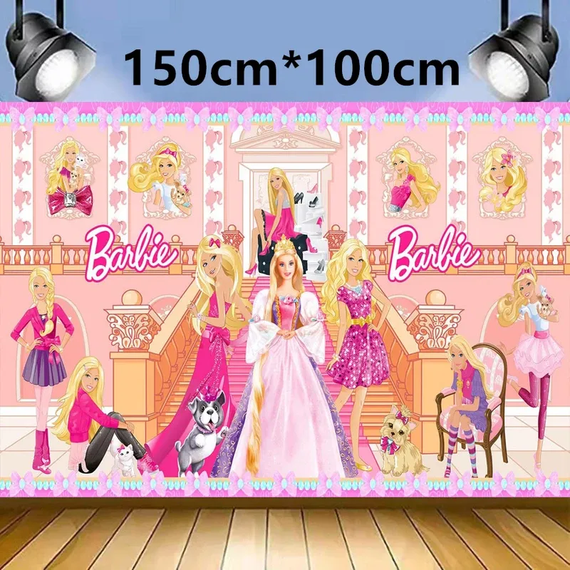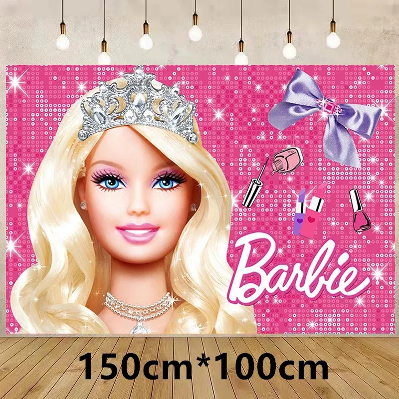 Barbiee Doll Disposable Tableware Party Decoration Pink Girl Barbied Birthday Banner Cupcake Topper Background Princess Balloons