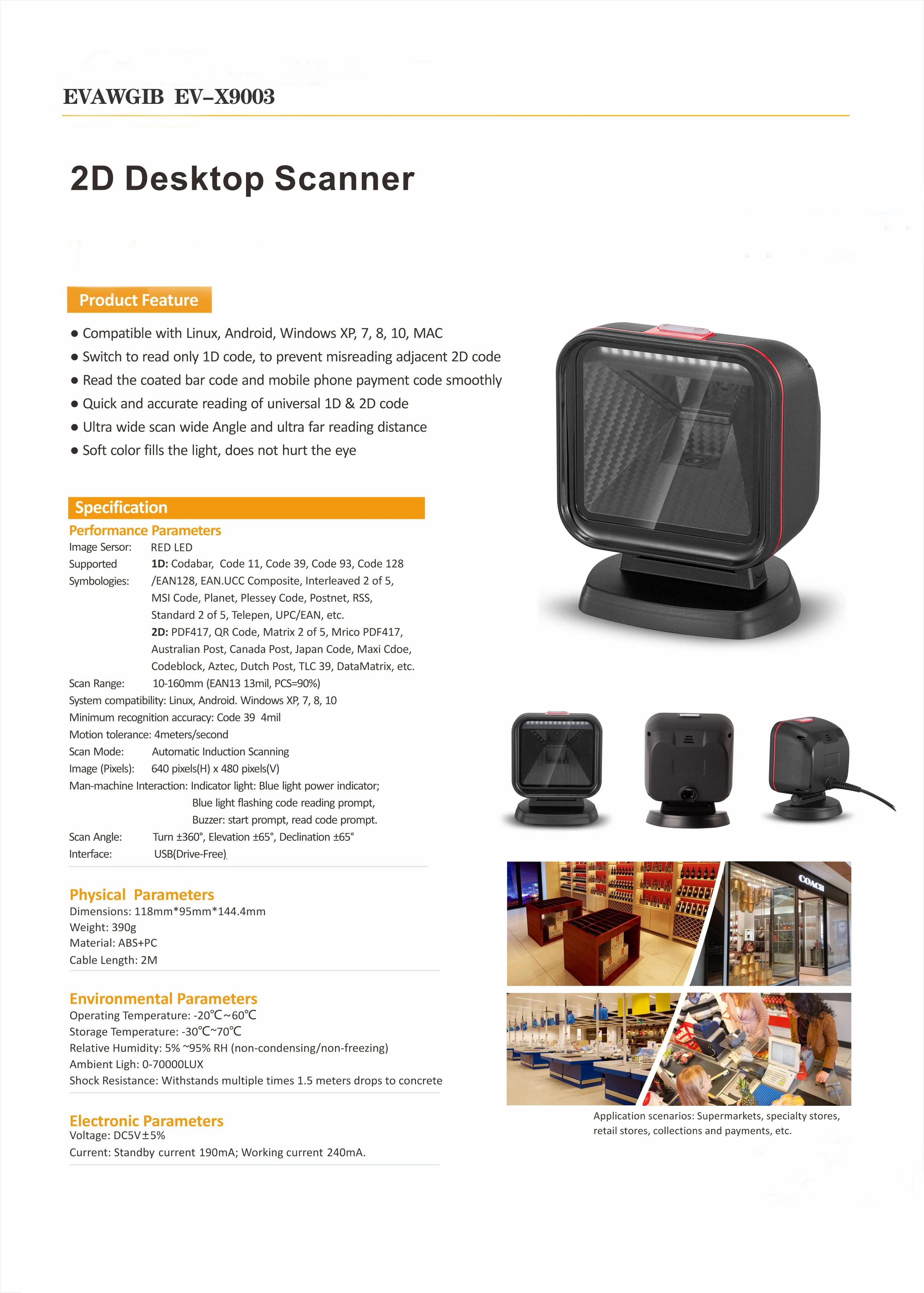 Barcode Scanner 2D Omnidirectional QR Code Desktop Barcode Reader for Supermarket Auto Sense Data Matrix PDF417 barcod scanners