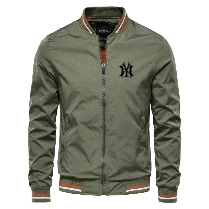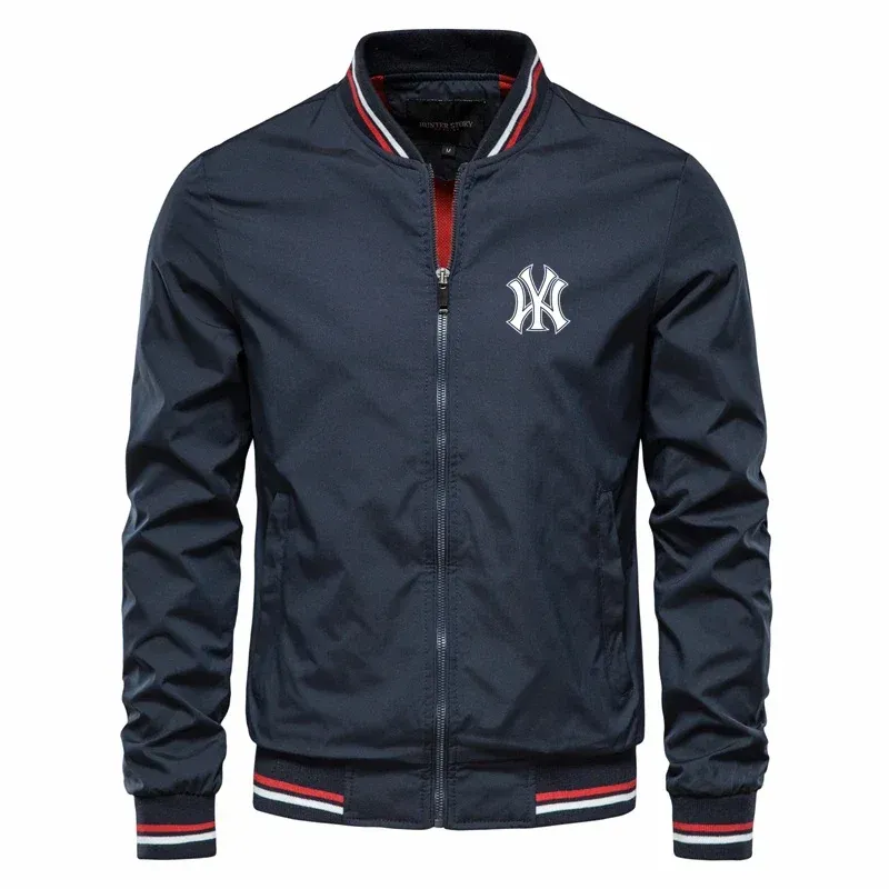 Baseball jacket, men's casual stand-up collar coat, men's fitted jacket, printed high-quality slim fit, autumn men's casual coat