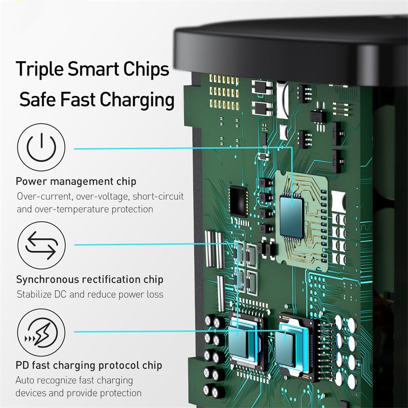 Staking design shrinks it as small as a 5W charger but maintains the performance of an 18W charger