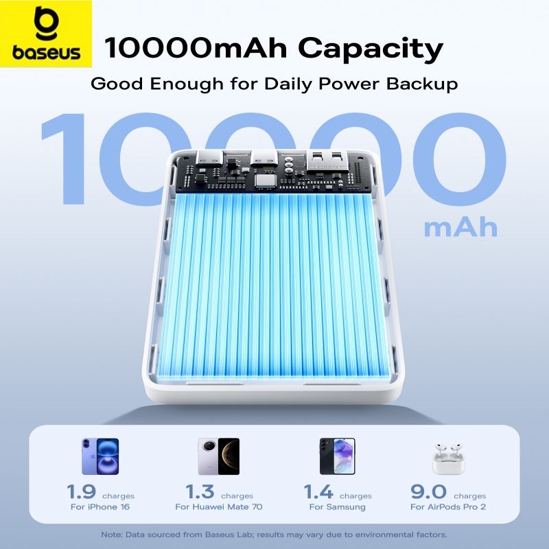Baseus 22.5W Power Bank 10000mAh Portable Charger PowerBank QC PD Fast Charging External Battery For iPhone 16 15 Samsung Xiaomi