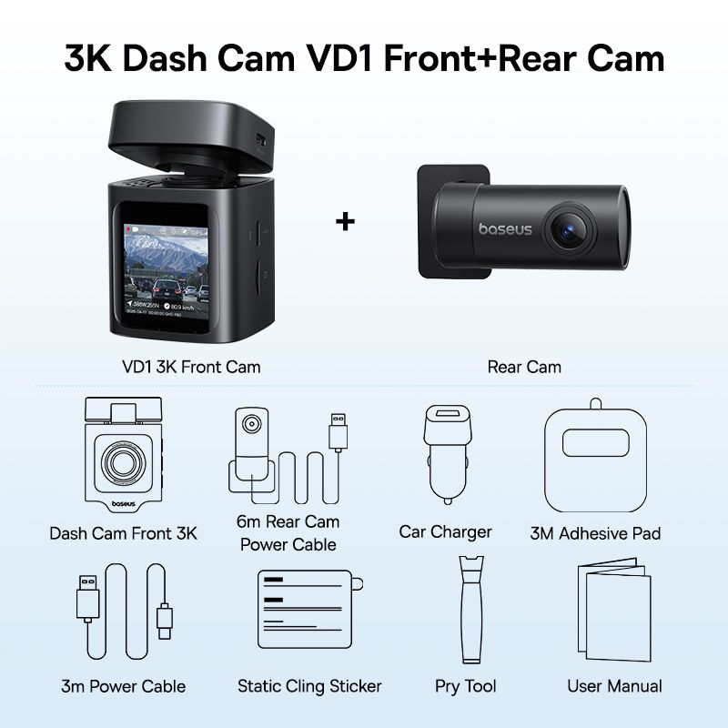 Baseus 3K Dash Cam VD1 Front and Rear Cam HD Built-in GPS Galileo Supercapacitor Car DVR Car Camera Recorder Support 24H Parking