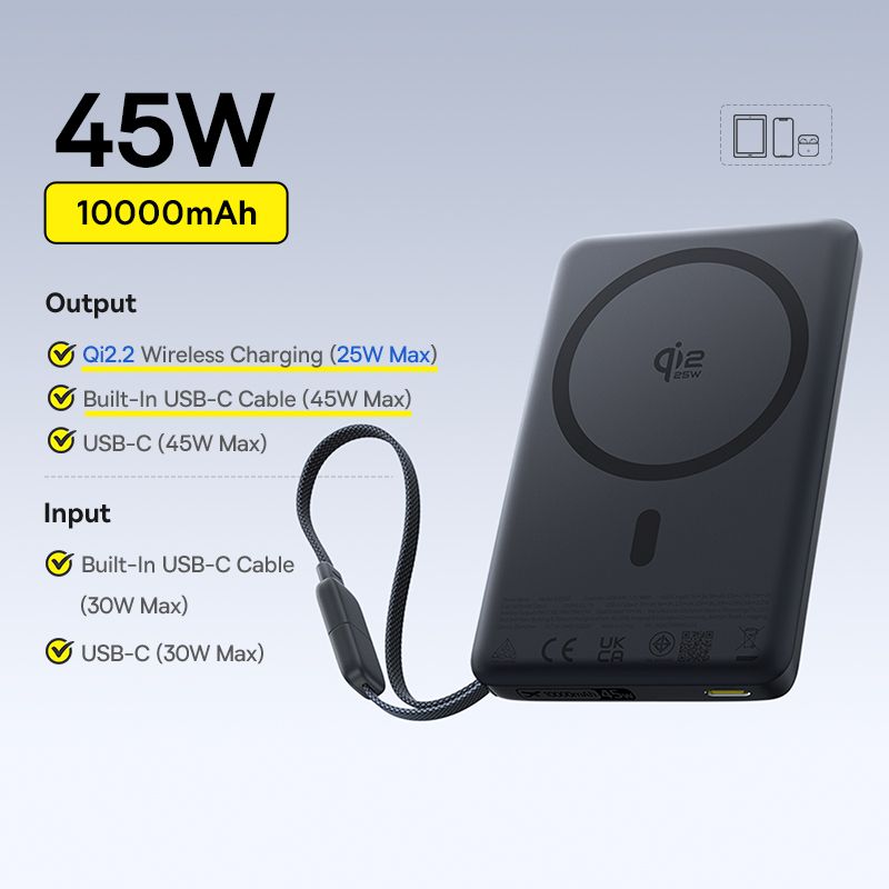 ✔Built-In 45W USB-C Cable Charging