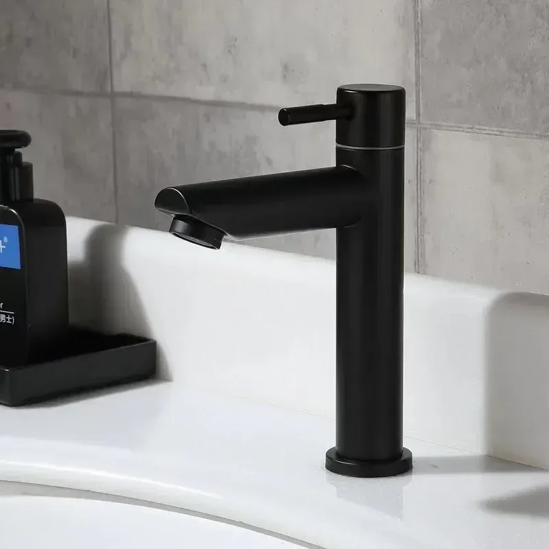Basin Faucet 304 Stainless Steel Single Cold Water Tap Black Silver Color Deck Mounted Lengthening and Raising Basin Sink Tap