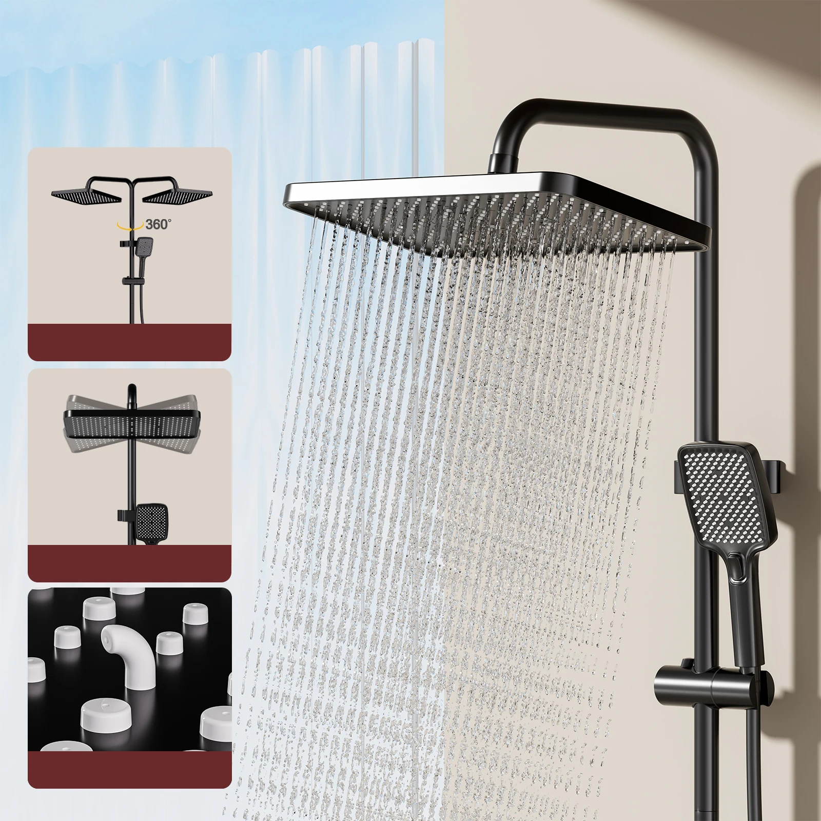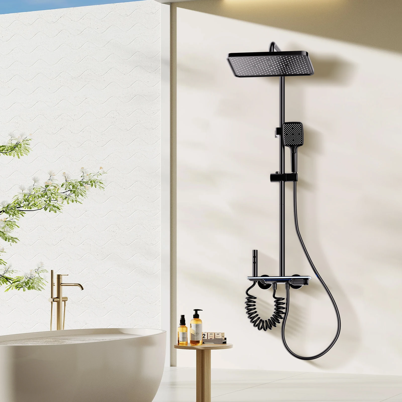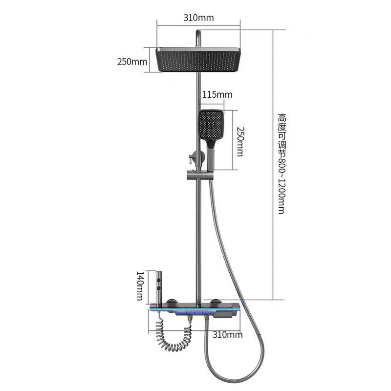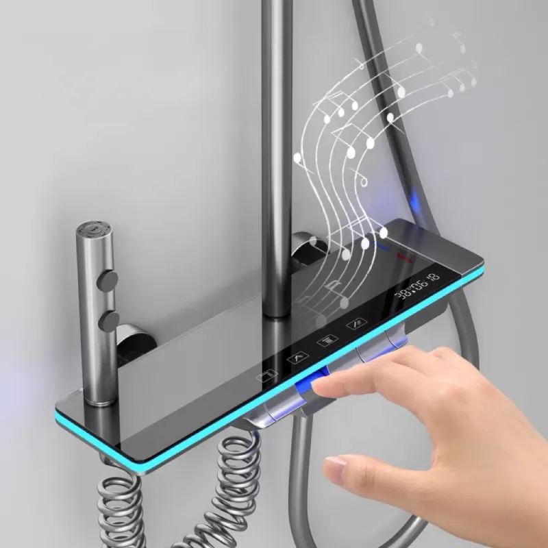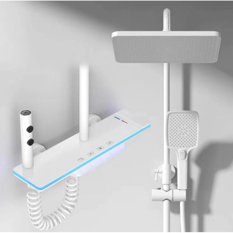Bathroom Luxury Shower Faucet System with Lights Tempered Glass Shower Set Digital Display Copper Mixer Shower Faucet Set