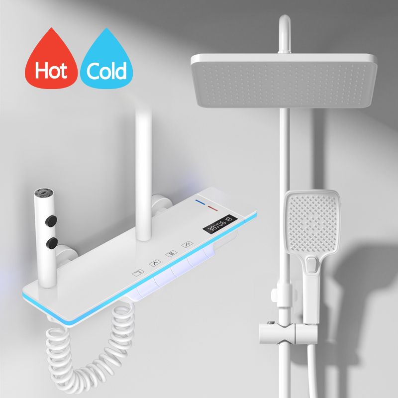 Bathroom Luxury Shower System with Lights Tempered Glass Piano Key Smart Digital Display Thermostat Mixer Shower Faucet Full Set
