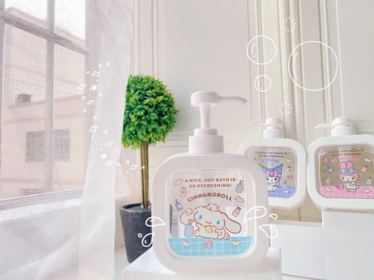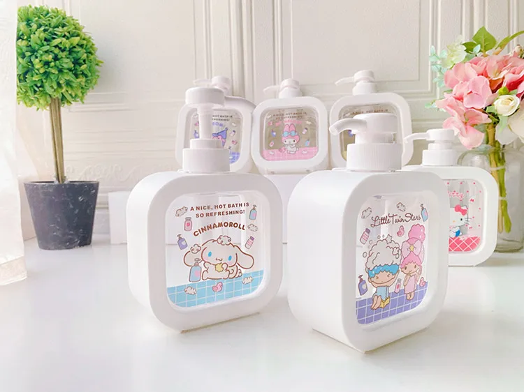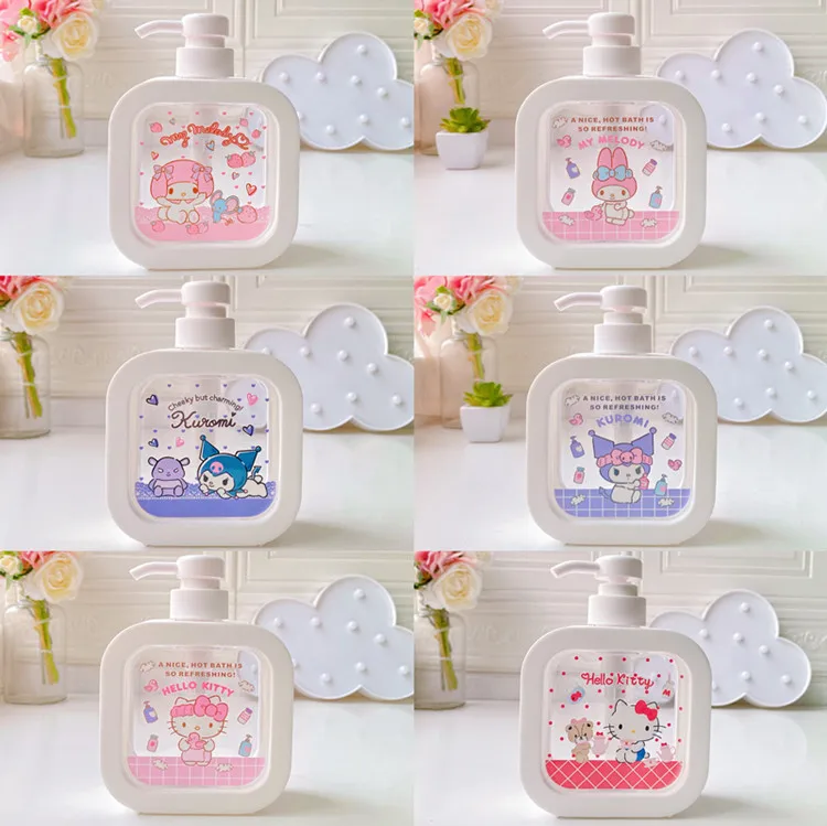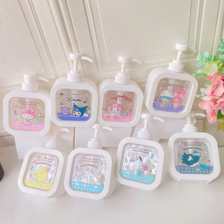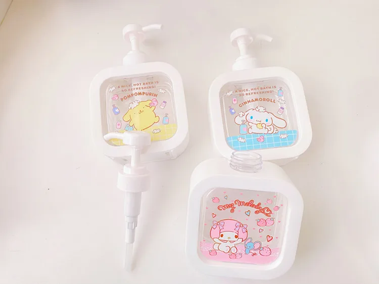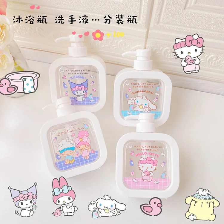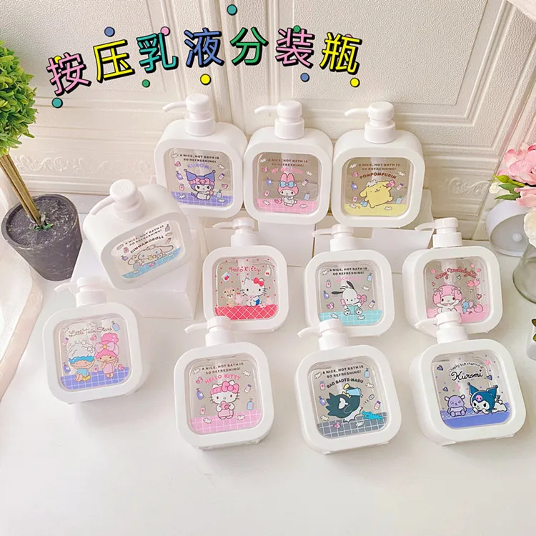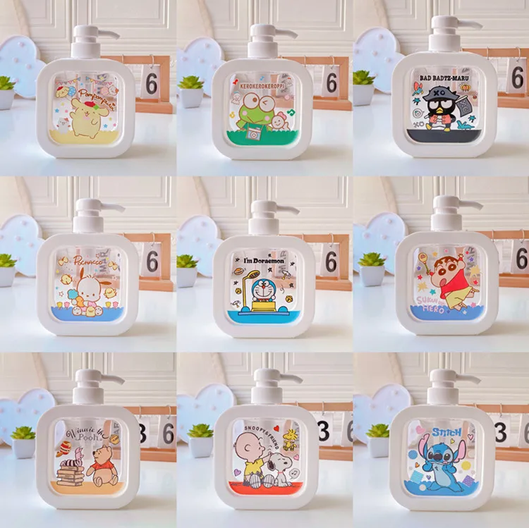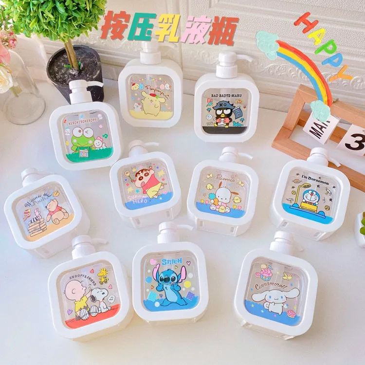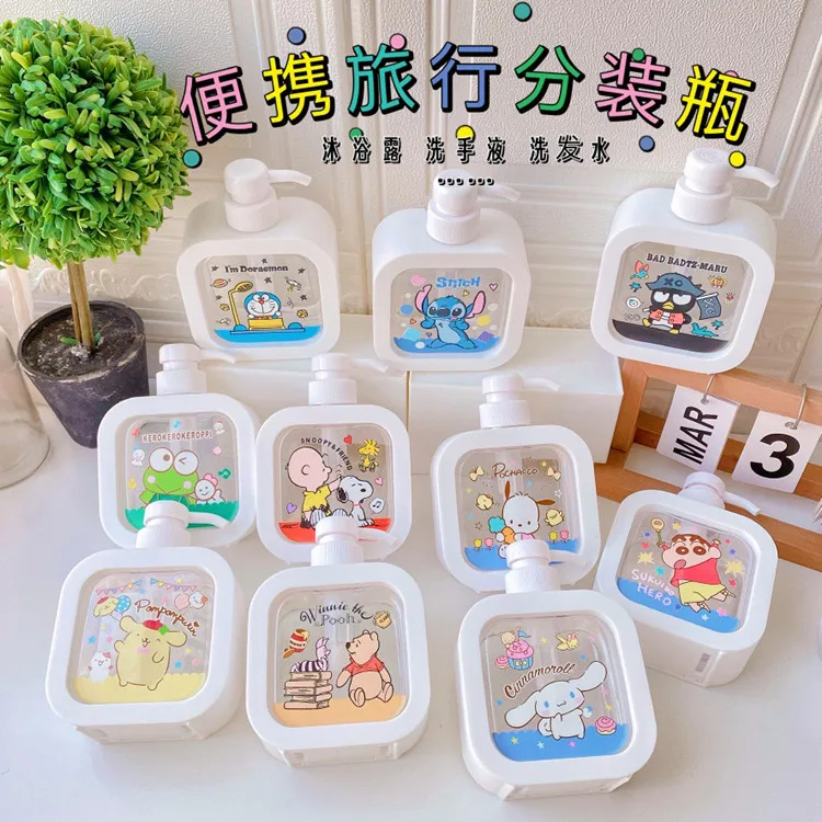 Bathroom Soap Dispensers Refillable Hello Ktty Kuromi Stitch Shampoo Shower Gel Holder Portable Travel Dispenser Empty Bath