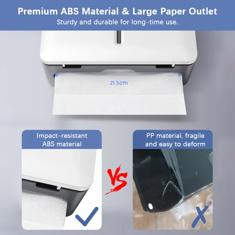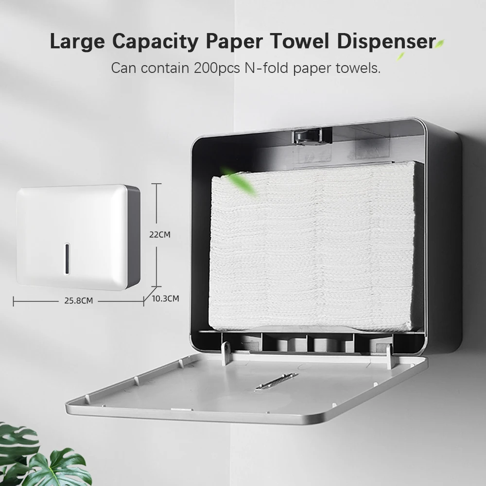[Large Capacity] Measures 25.8 * 22 * 10.3cm/ 10.1 * 8.6 * 4.05inch, with 21.5cm/ 8.4inch paper outlet, can contain about 200pcs N-fold paper towels.