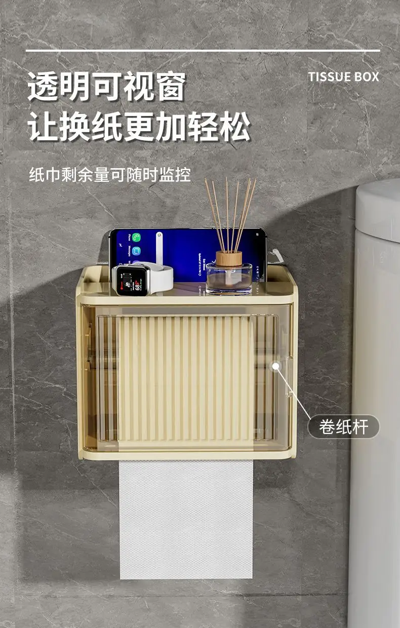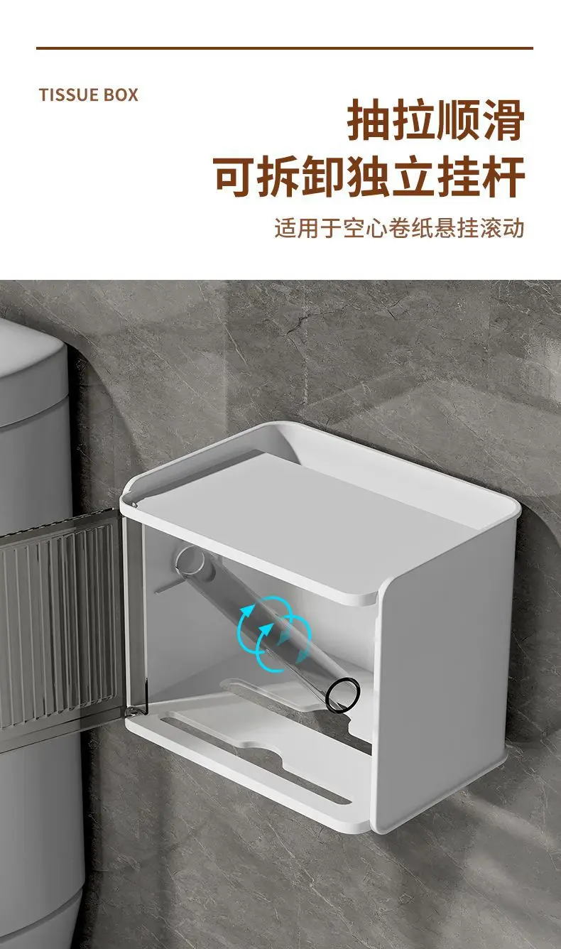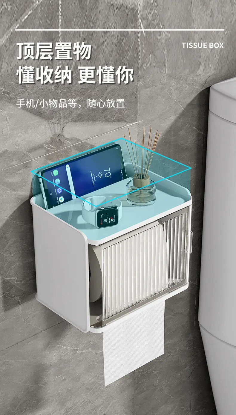 Bathroom Toilet Paper Box Toilet Tissue Box Paper Extraction Box Waterproof Wall Mounted Punch Free Toilet Paper Shelf Roll