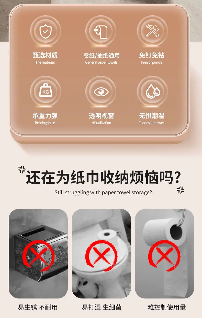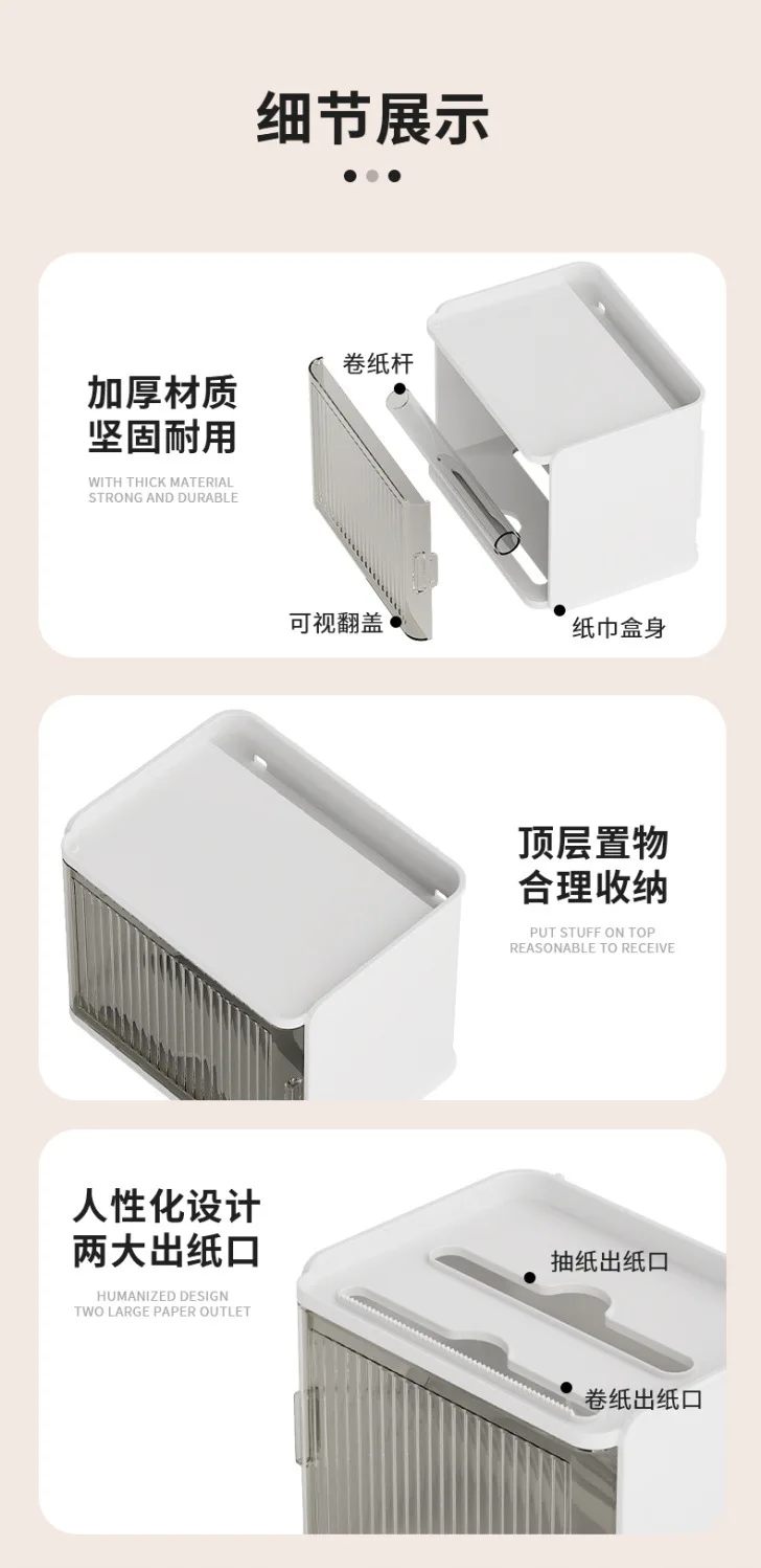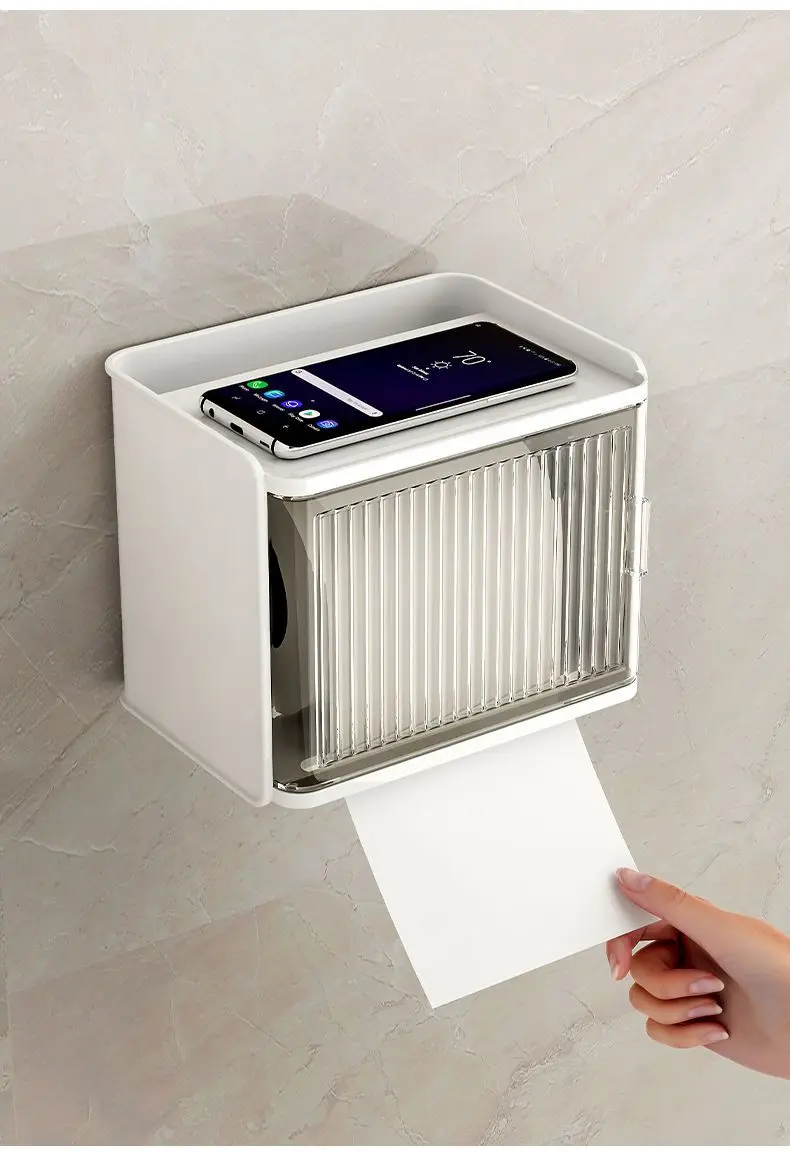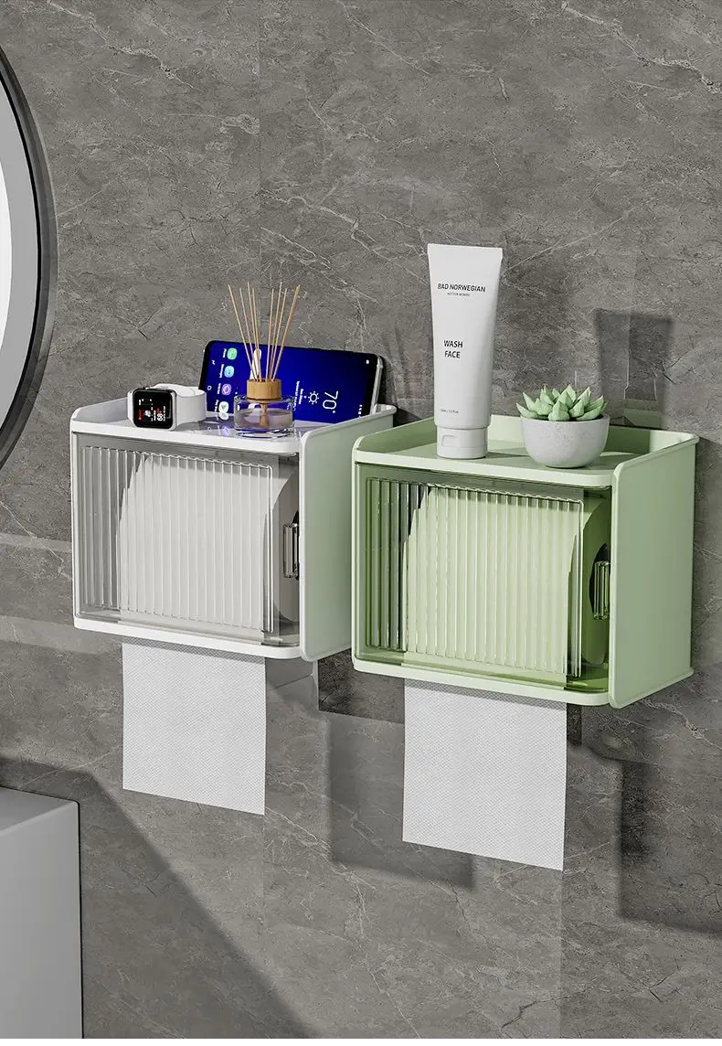Bathroom Toilet Paper Box Toilet Tissue Box Paper Extraction Box Waterproof Wall Mounted Punch Free Toilet Paper Shelf Roll