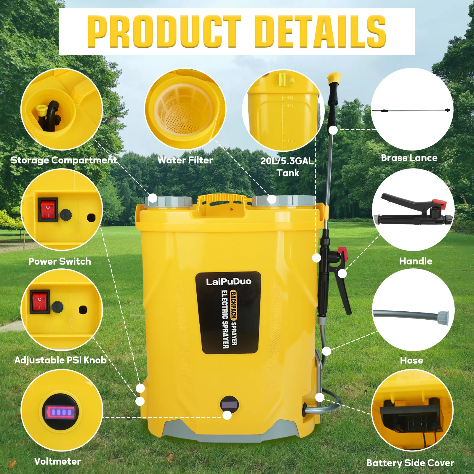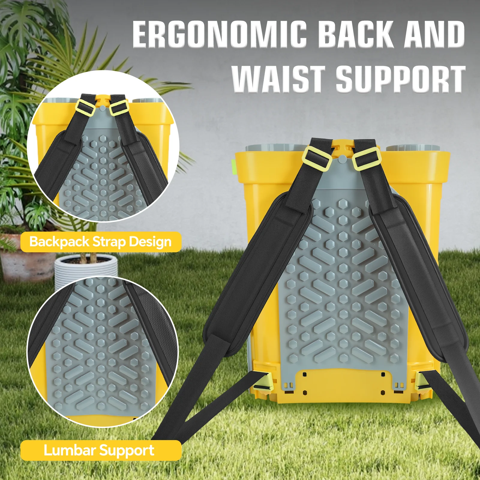 【Ergonomic Design】Our LaiPuDuo sprayer features double-layer soft-padded shoulder straps and lumbar support to reduce back tension and fatigue. Wide-mouth covers and secondary covers for nozzle storage enhance ease of use and efficiency.