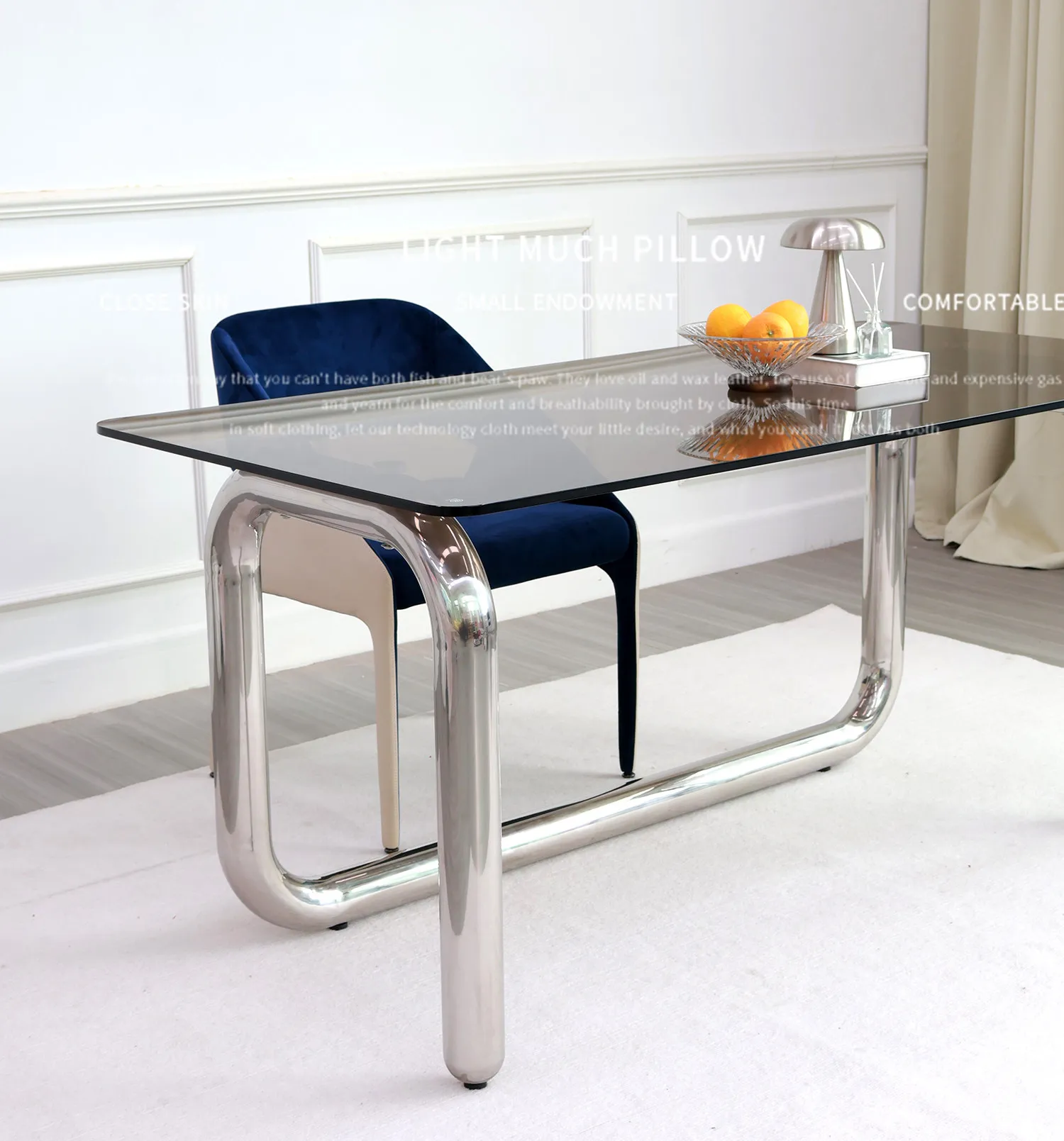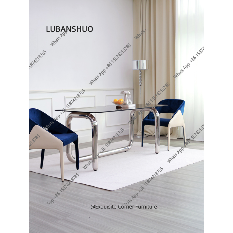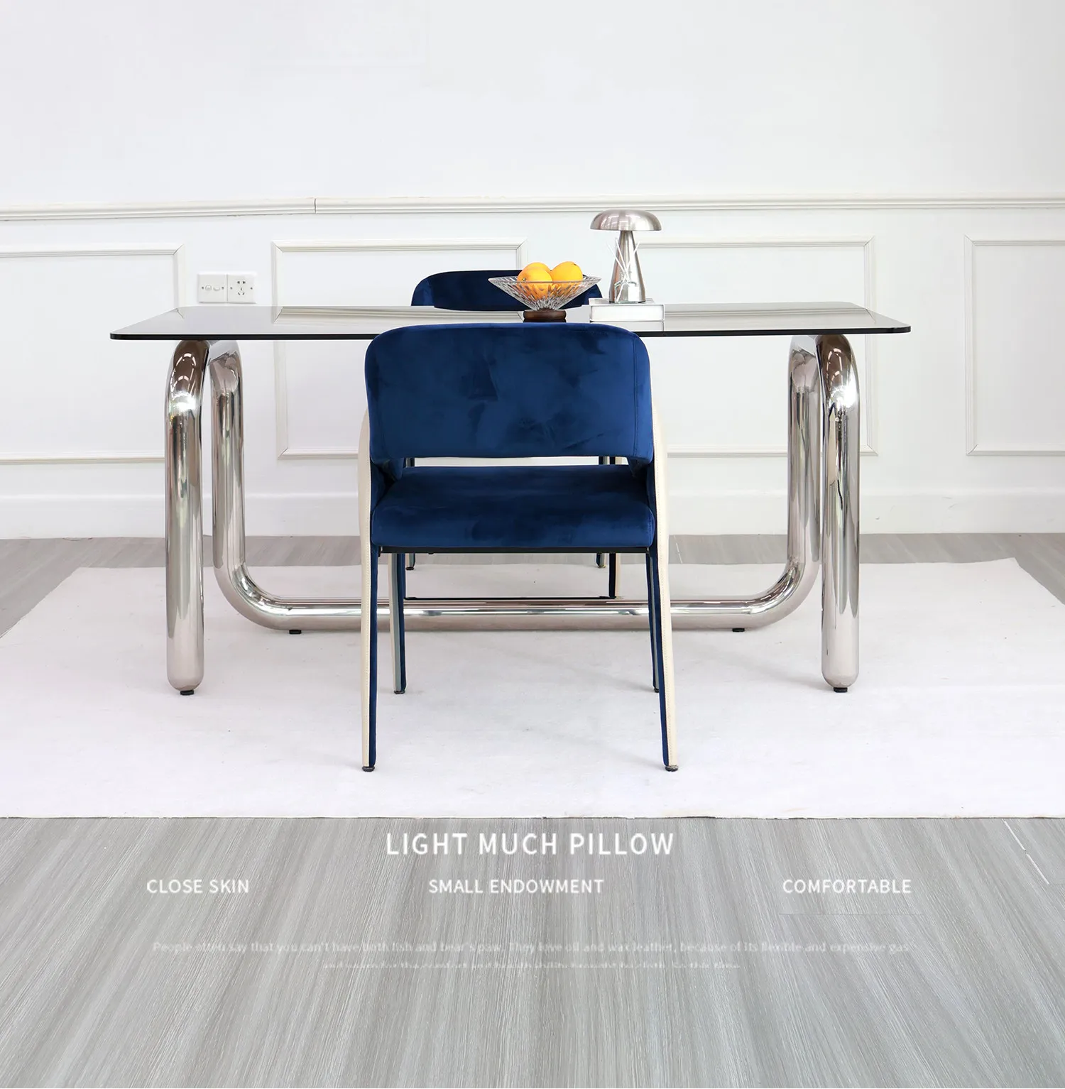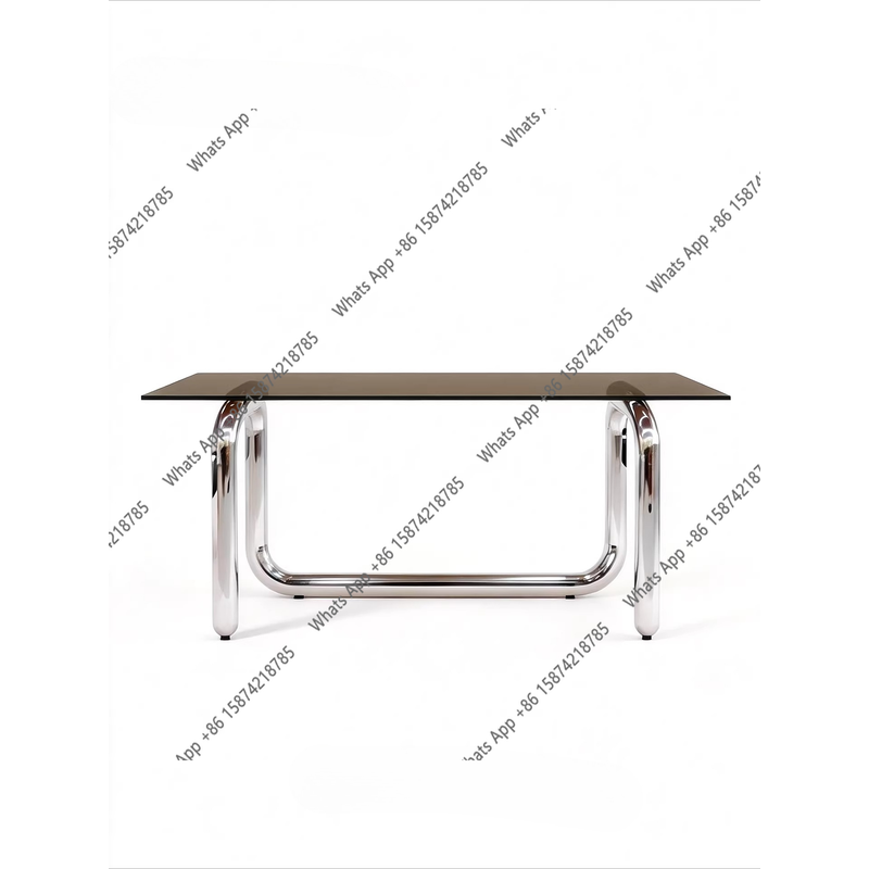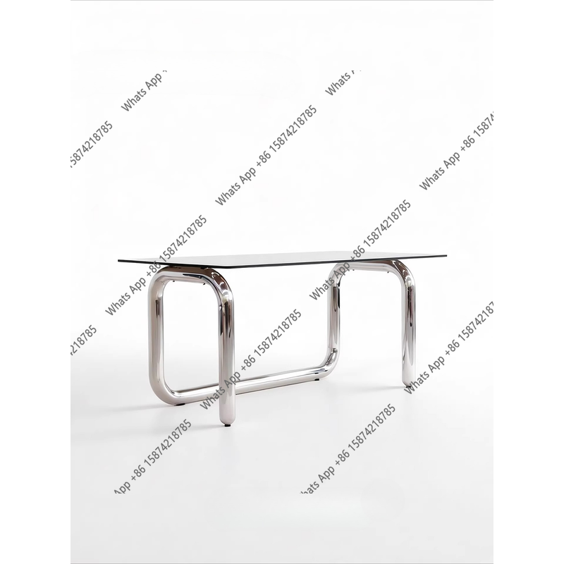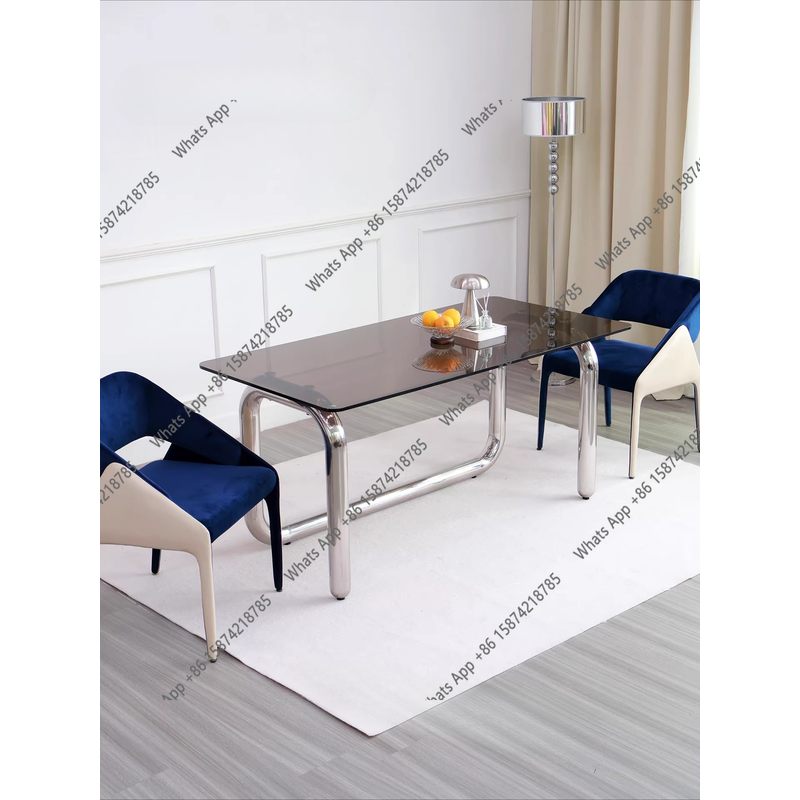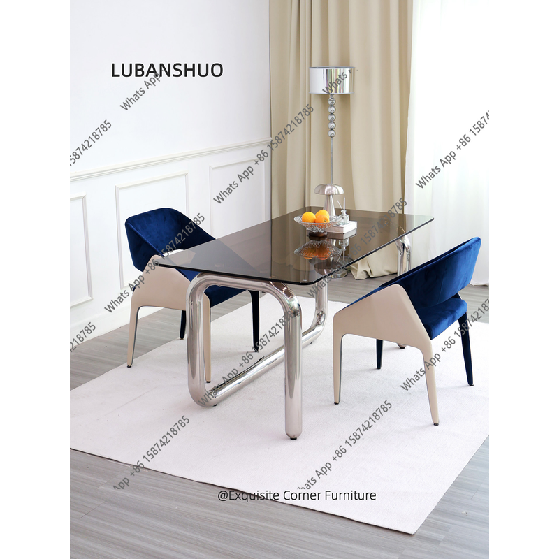 Bauhaus simple modern glass dining table stainless steel base small apartment minimalist square dining table designer model