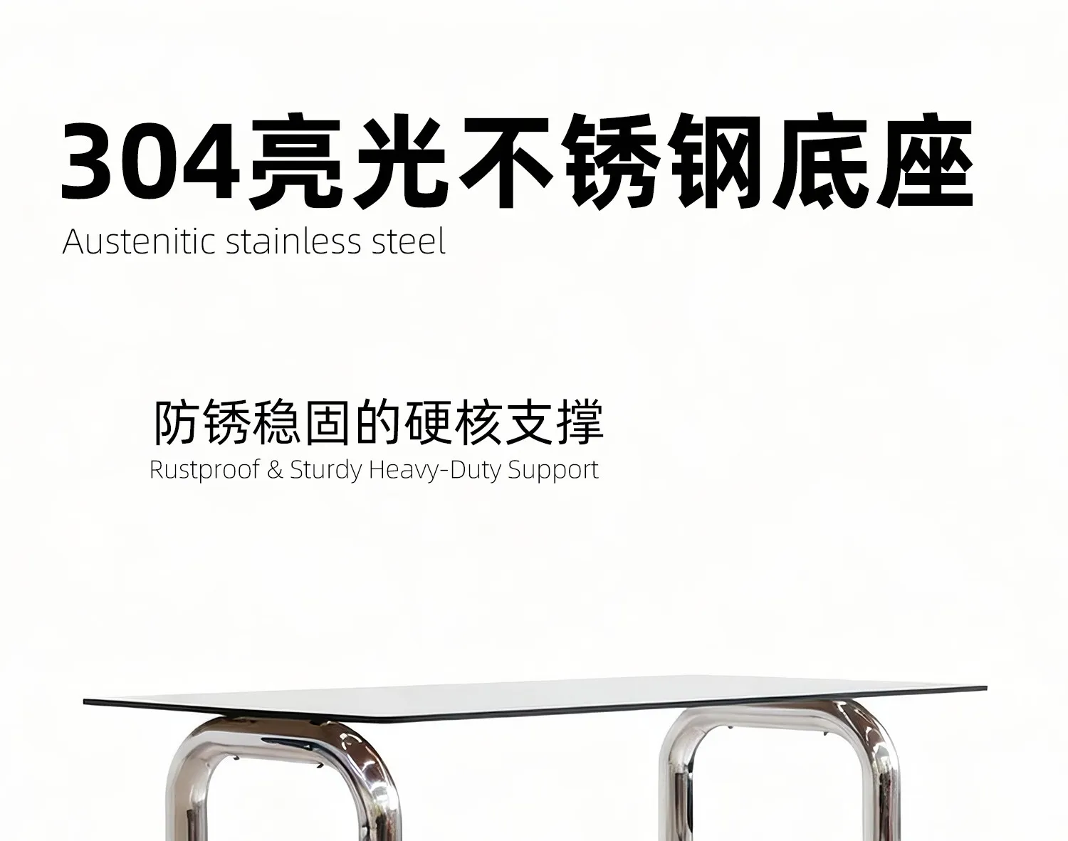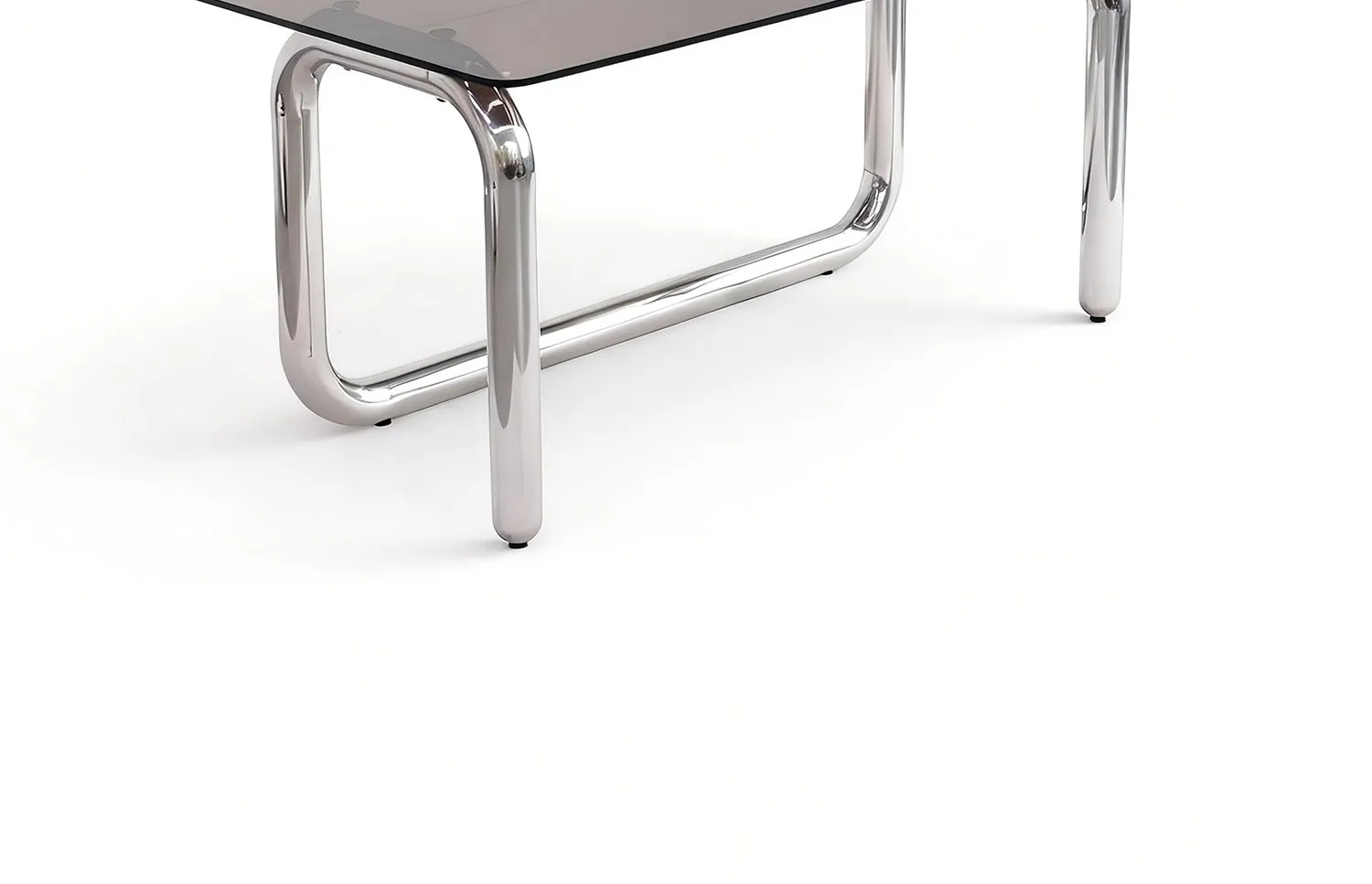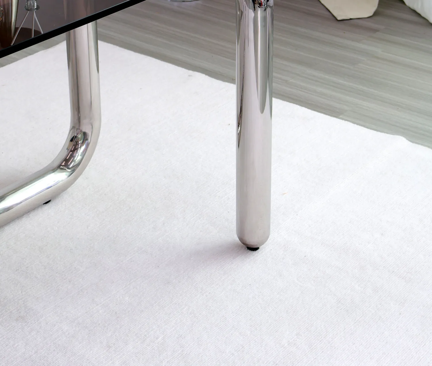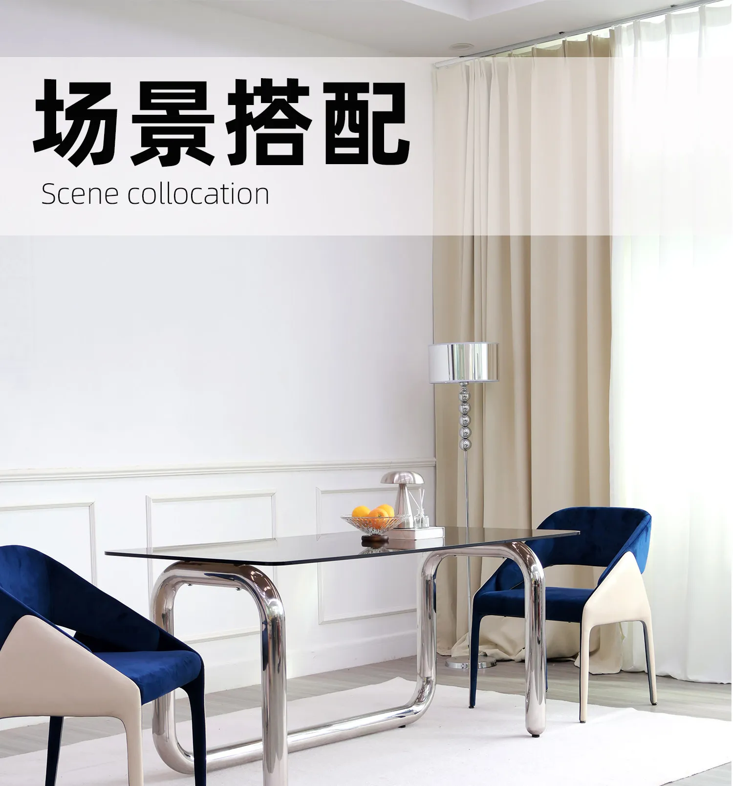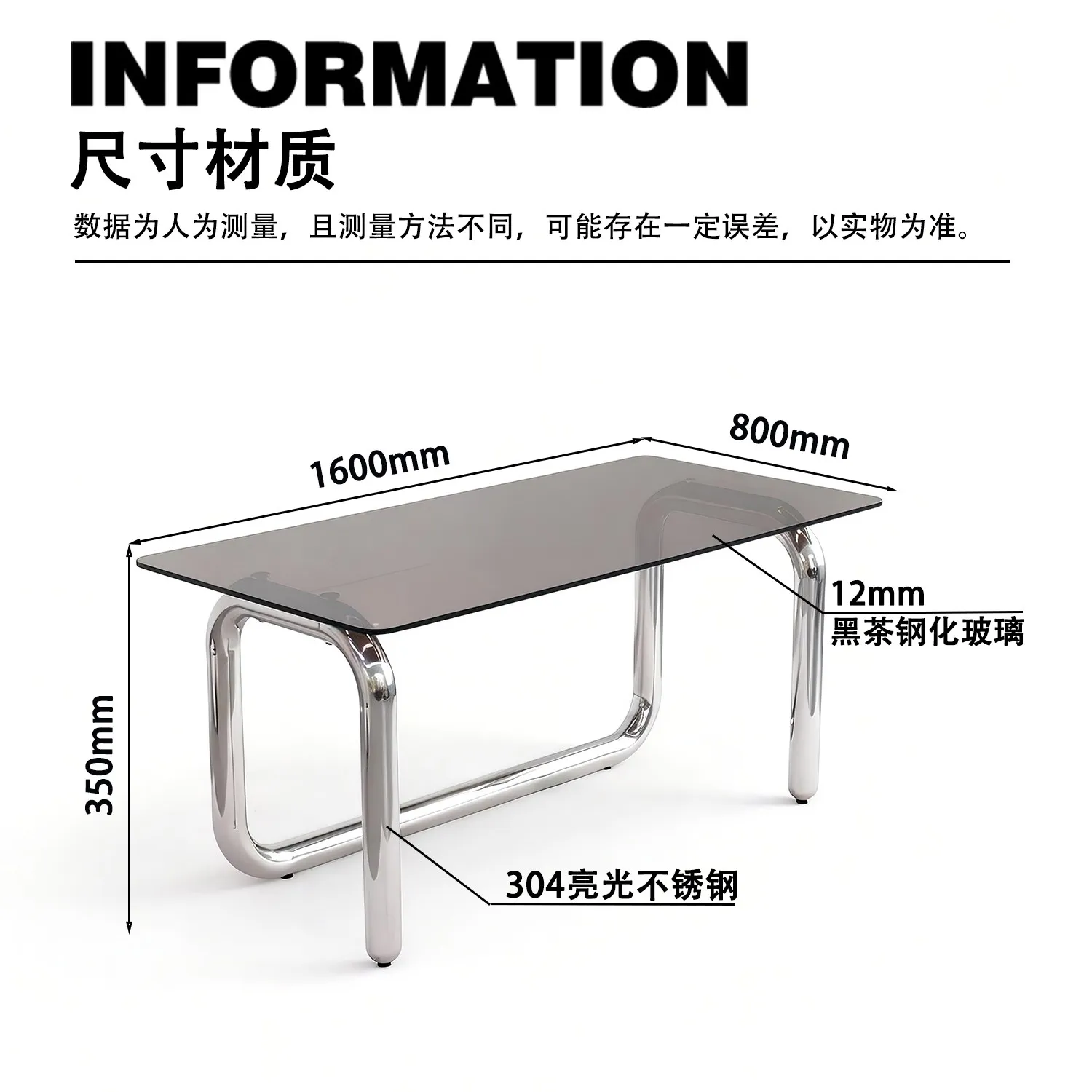 Bauhaus simple modern glass dining table stainless steel base small apartment minimalist square dining table designer model