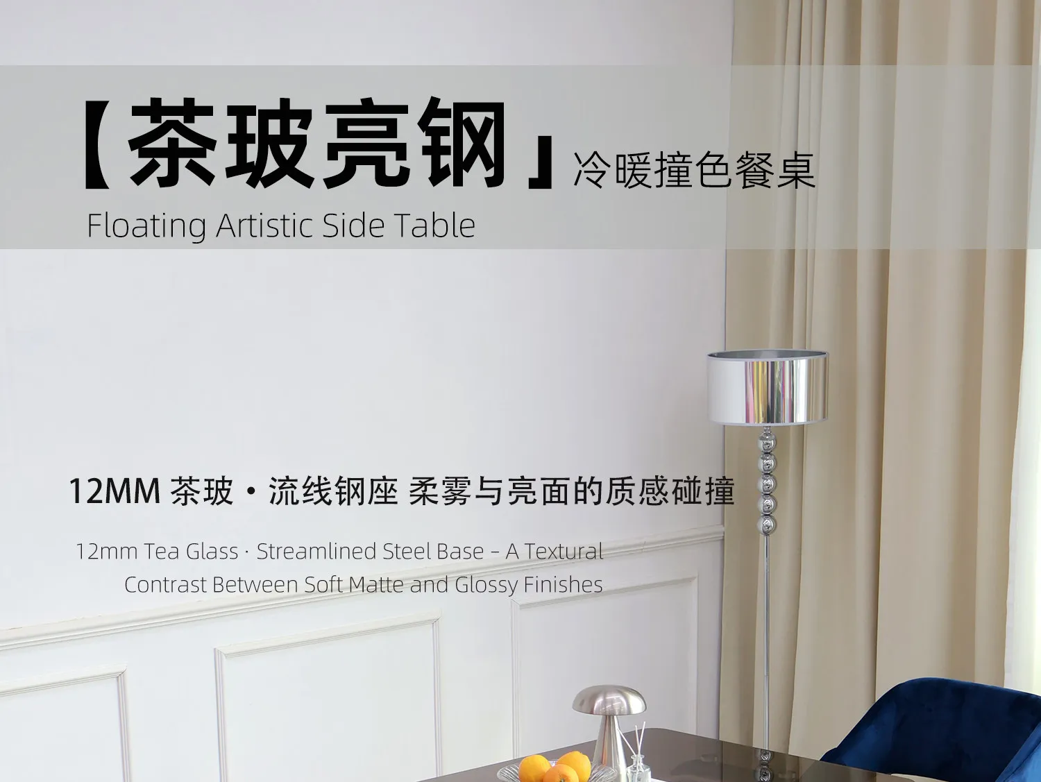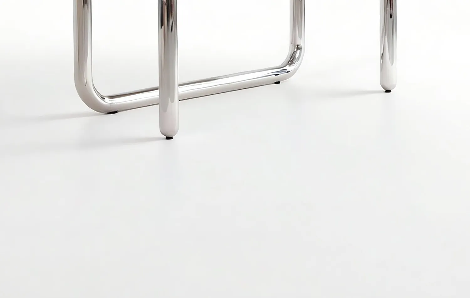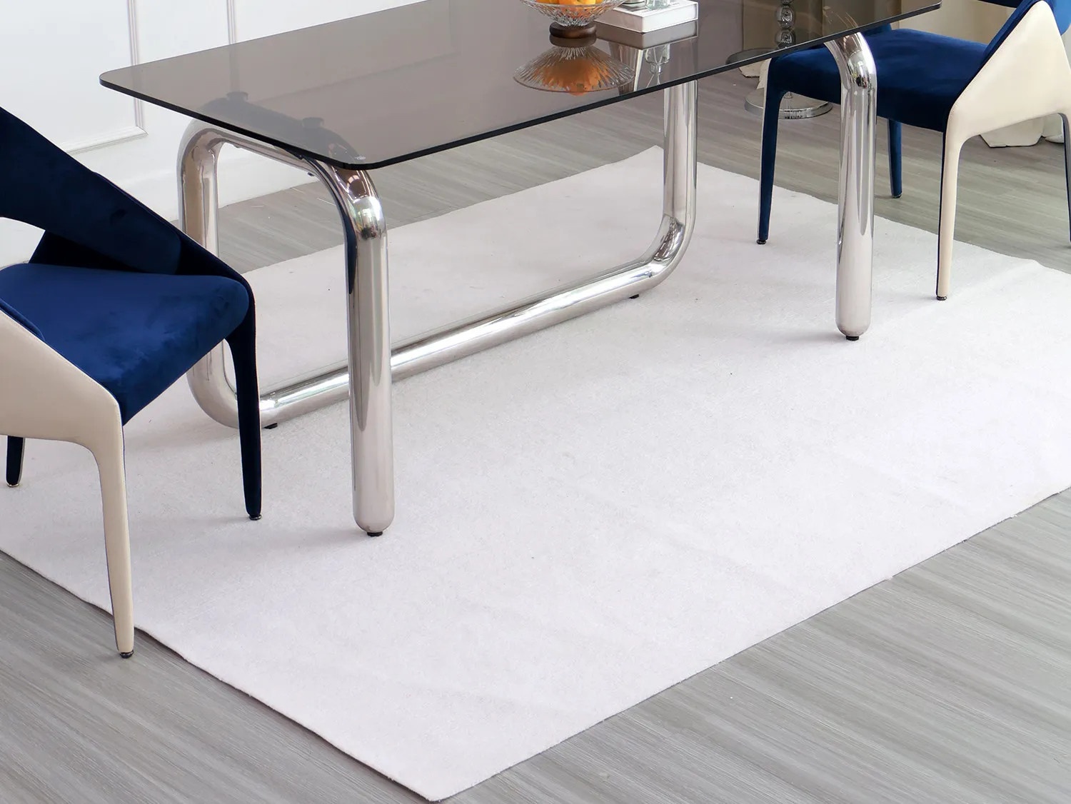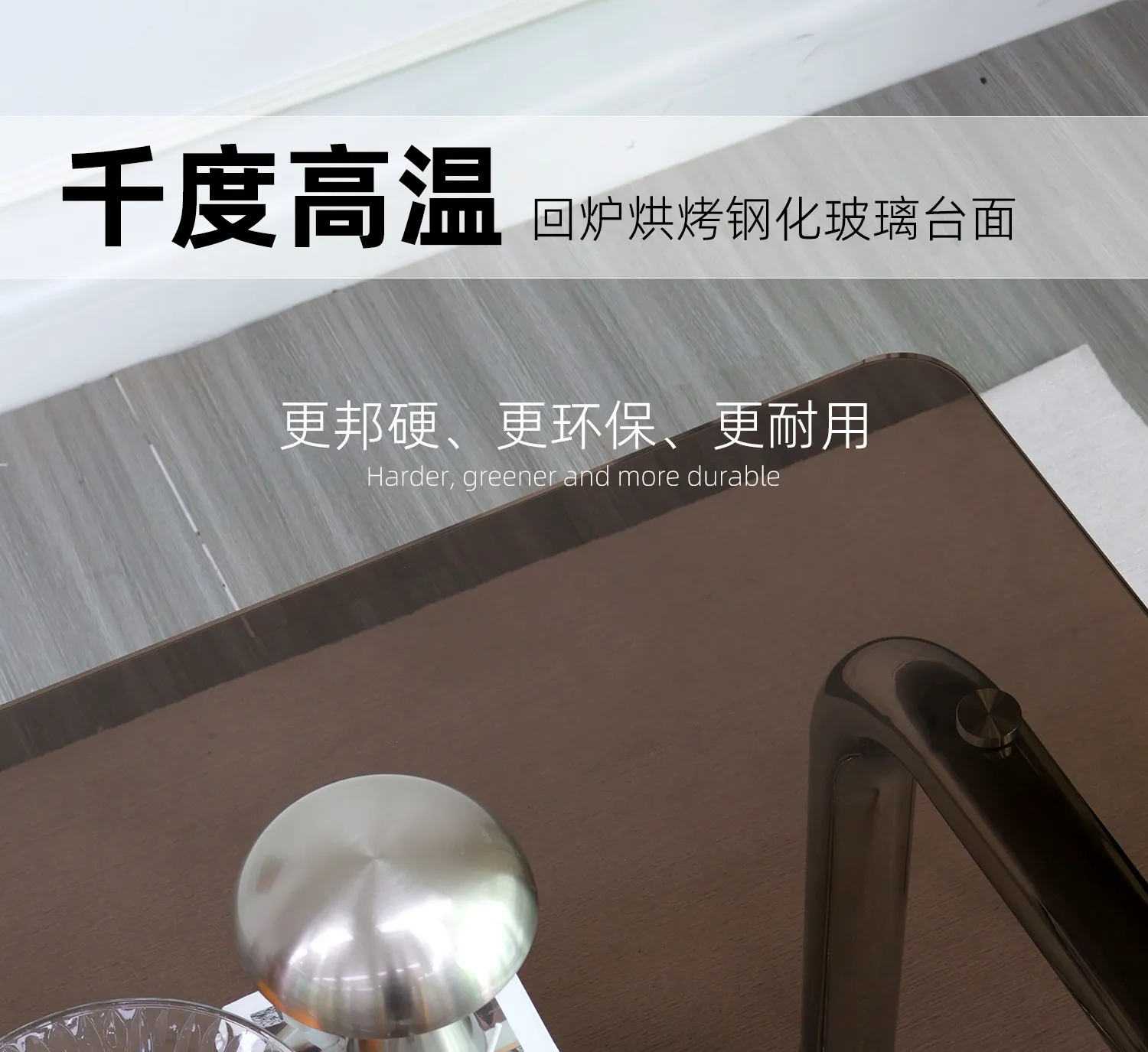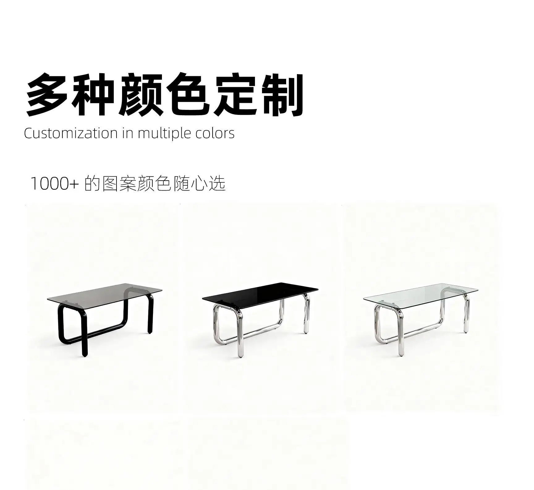 Bauhaus simple modern glass dining table stainless steel base small apartment minimalist square dining table designer model