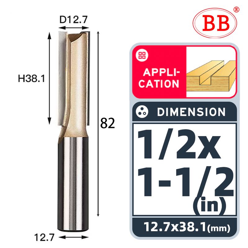 BB Straight Bit 1/4 1/2 Woodworking Slot Milling 2 3 Flute Long Router Bit Tool Slotting End Mill Cutter Solid Wood Board
