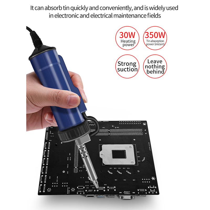 1. Strong Suction: The electric solder tin sucker has strong suction and can be applied to thick film integrated circuits and large components.