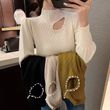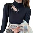 Beaded Half Turtleneck Puff Sleeve Long Sleeve Bottoming Shirt Apricot Average Size
