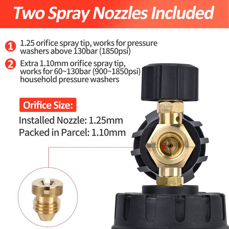 【Easy to use】The high pressure washer color painted short Spray Gun Kit is equipped with 1/4”Quick Connector, which can easily connect the extension rod, nozzle, foam cannon. The package comes with 5 color nozzles: 0°, 15°, 25°, 40° and soap spray mode.