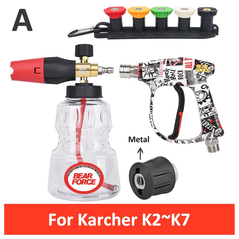 BEAR FORCE Pressure Washer Color Painted Short Spray Gun Snow Foam Lance Set, Compatible for Karcher Nilfisk Bosch Lavor Daewoo
