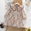 Bear Leader Autumn Spring New Girls' Dress Fashion Cute Doll Neck Flower Print Dress Children's Girls Long Sleeve Princess Dress