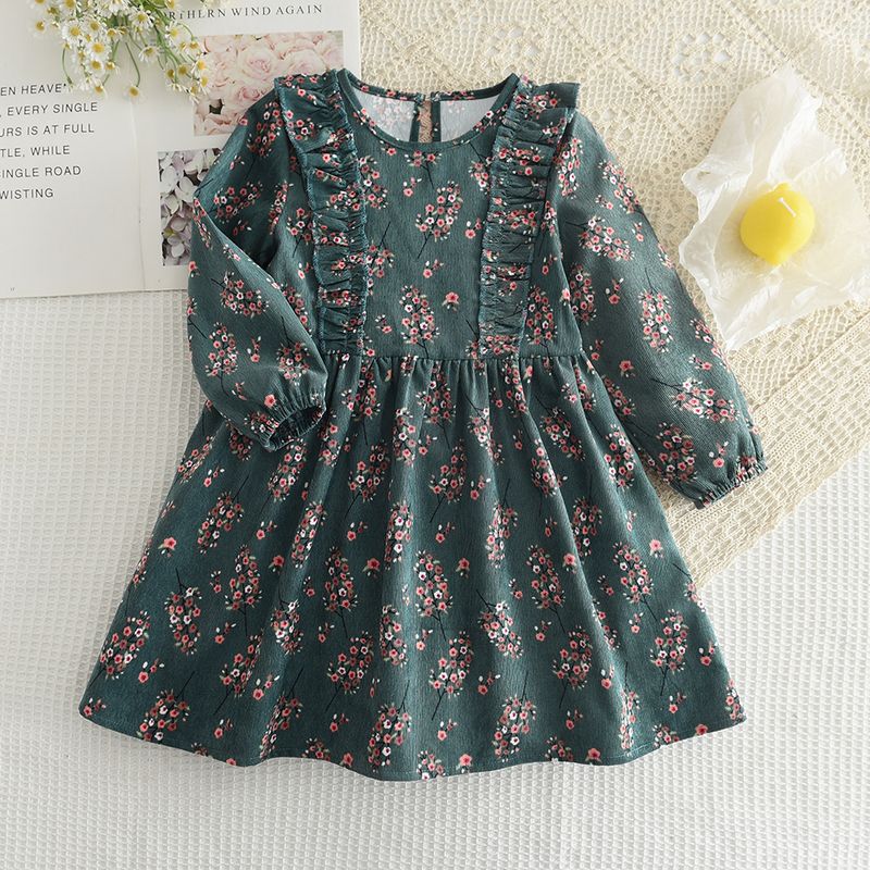 Bear Leader Autumn Spring New Girls' Dress Fashion Cute Doll Neck Flower Print Dress Children's Girls Long Sleeve Princess Dress