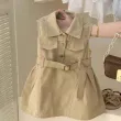 Bear Leader Fashion Girls Windbreak Dresses Summer Sleeveless Work Outfits with Waistband Solid Color Kids Clothes