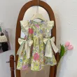 Bear Leader Korean Children's Summer Girls Fashion Color Blocking Dresses Children's Wooden Ear Edge Floral Dress Girls Clothing
