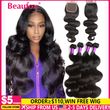 Beaufox Body Wave Bundles With Closure Brazilian Hair Weave 3 Bundles With Closure Remy Natural Human Hair Bundles With Closure