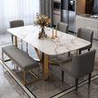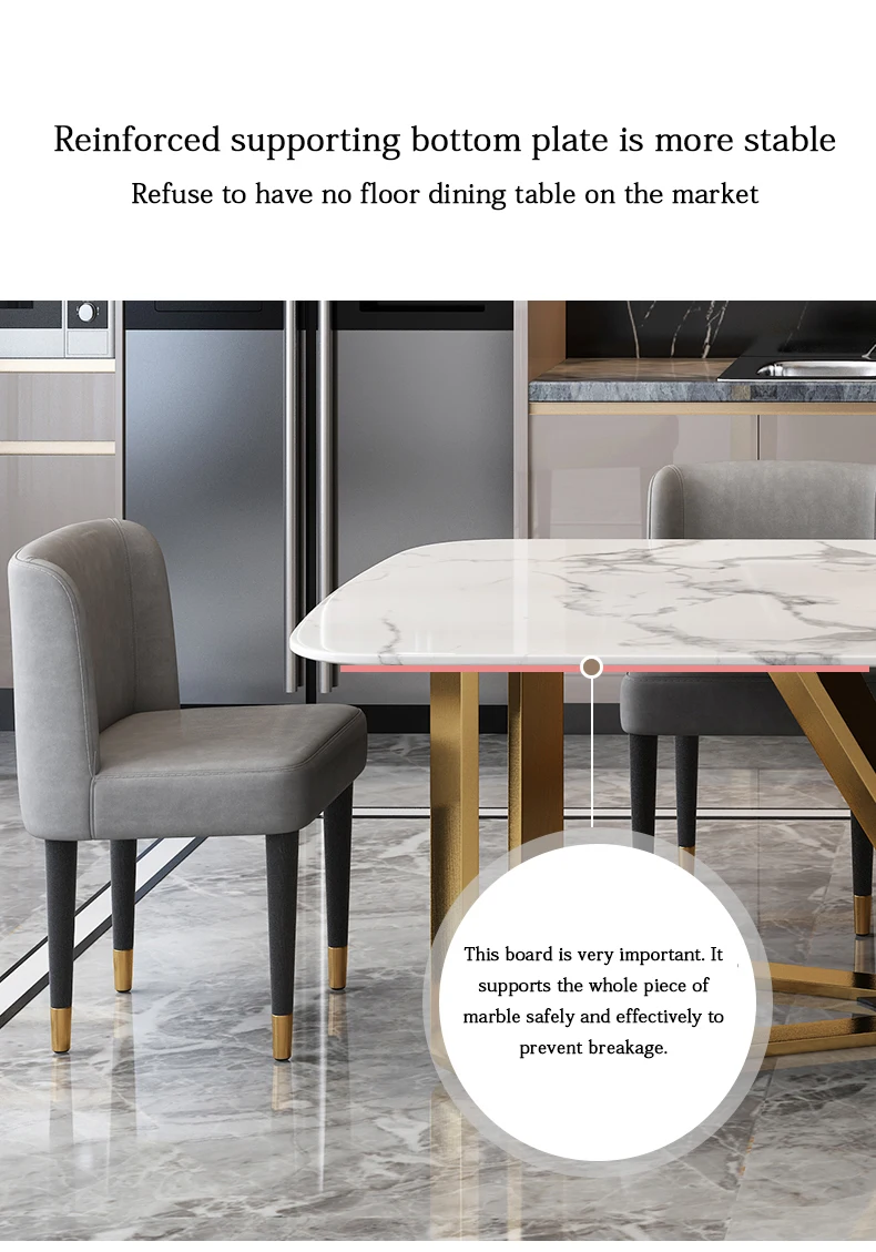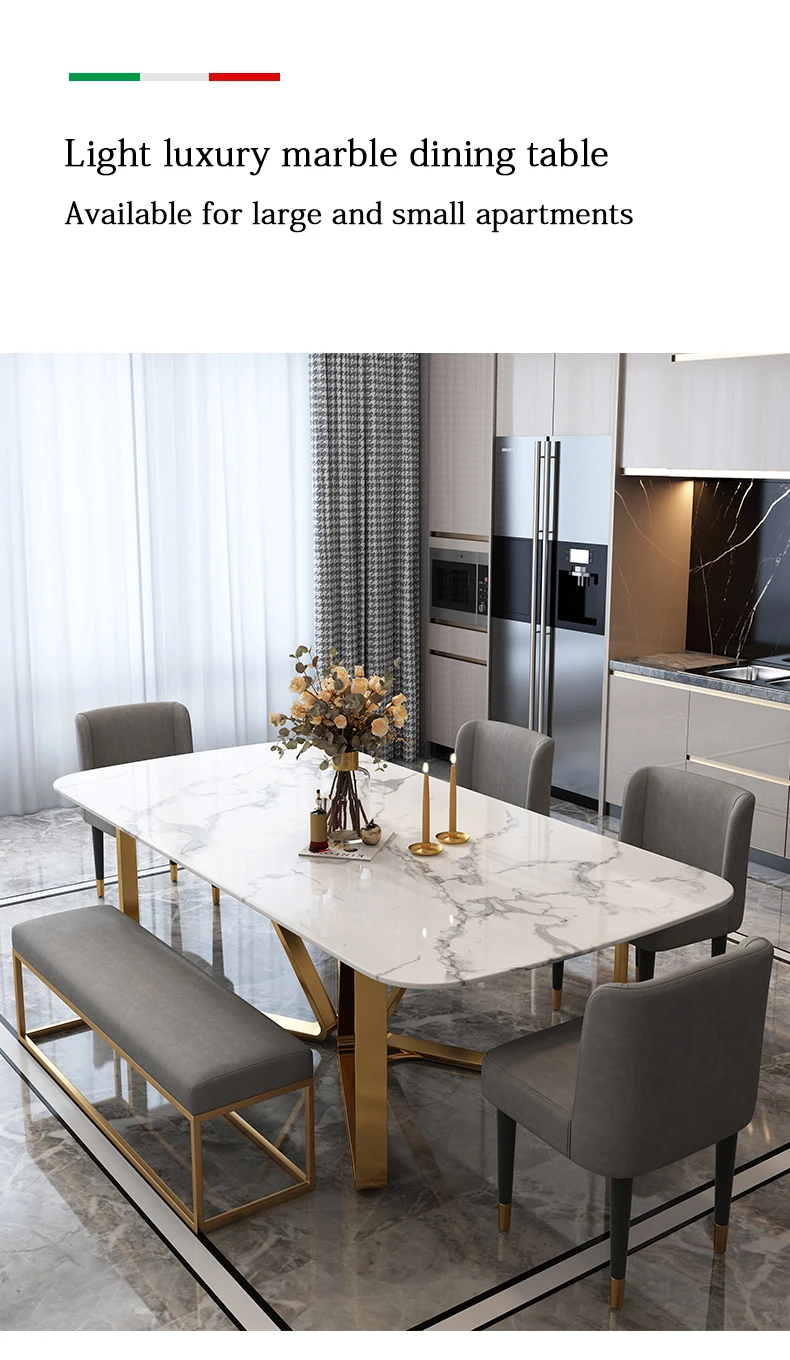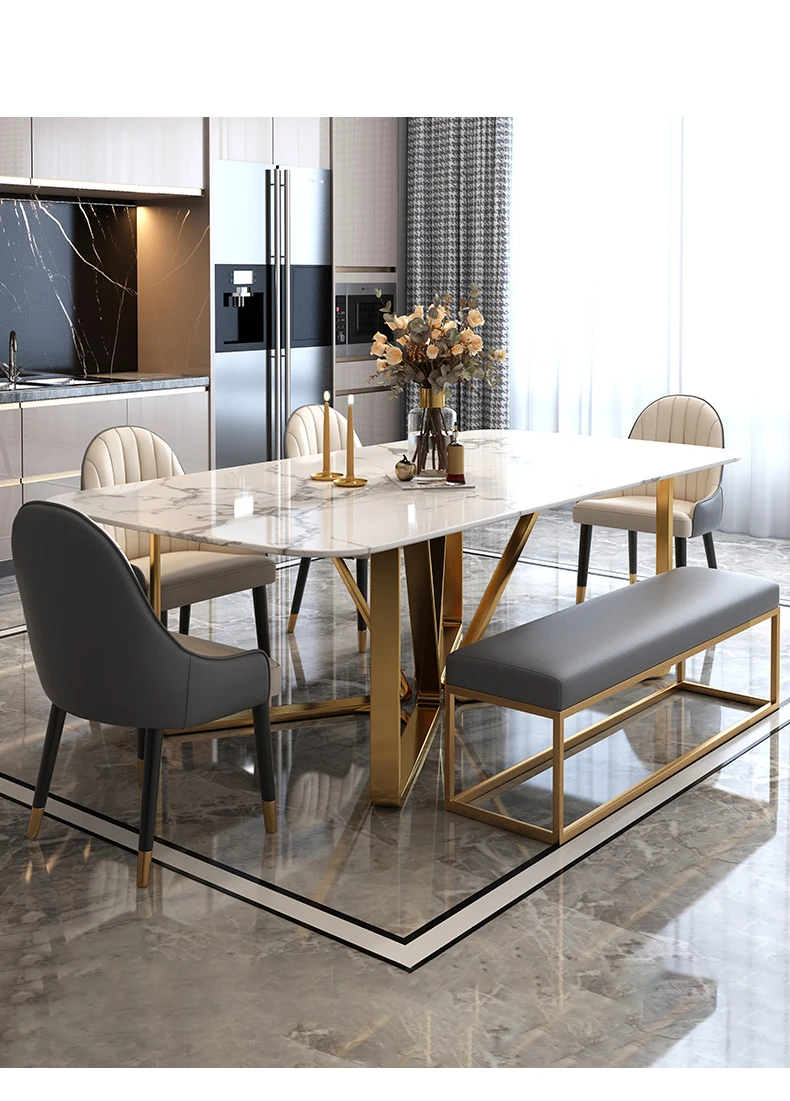 Light Luxury Marble Dining Table Minimalist Furniture Golden Stainless Steel Base Design High-End Rectangle Table And Six Chairs