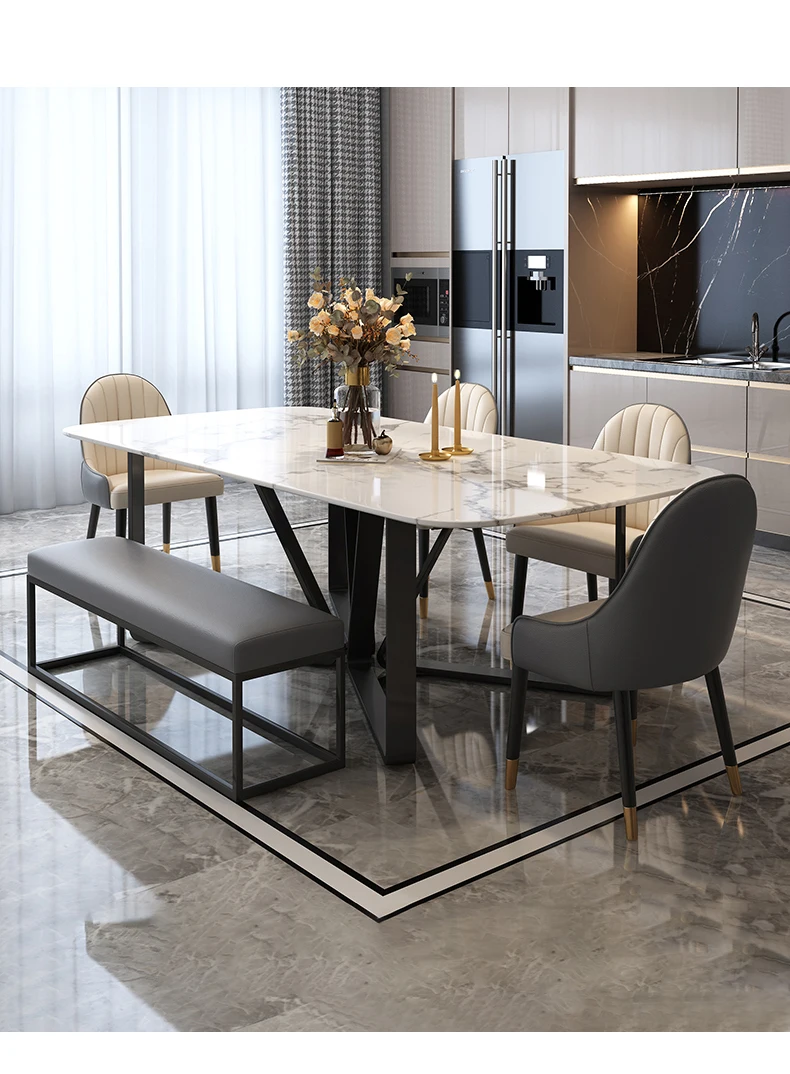Beauty Marble Dining Table Minimalist Golden Stainless Steel Design High-End Rectangle Table Restaurant Muebles Hotel Furniture