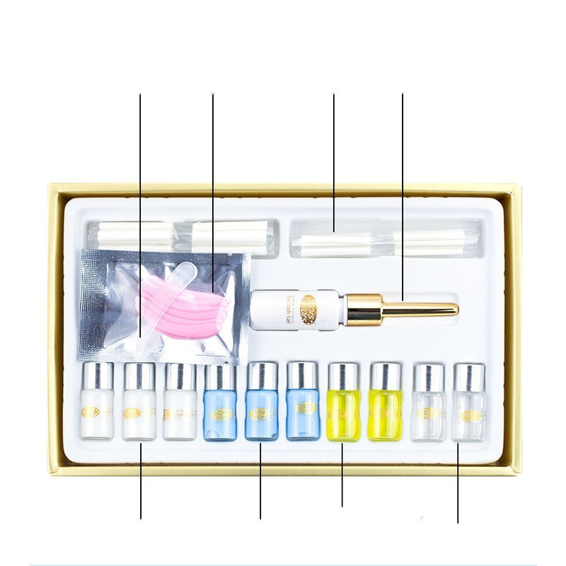 1. First perm (pink): makes eyelashes naturally curly and shiny black