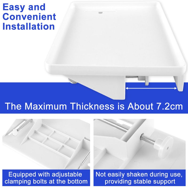 [Easy to Install] This bedside shelf tray is equipped with a bolt at the bottom that can adjust the tightness of the clamping, the maximum thickness that can clamp is about 7.2cm, and the bolt is reinforced for installation, which makes the tray not easy to shake when in use, and provides a solid support.