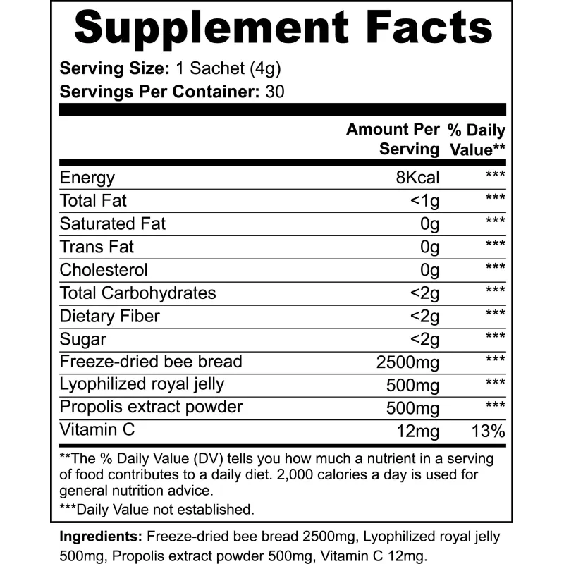 Bee Pearl Powder offers a natural, nutrient-rich supplement that fits seamlessly into your daily routine. With a unique blend of bee products and Vitamin C, this product is ideal for boosting energy, supporting immunity, and enhancing overall wellness.