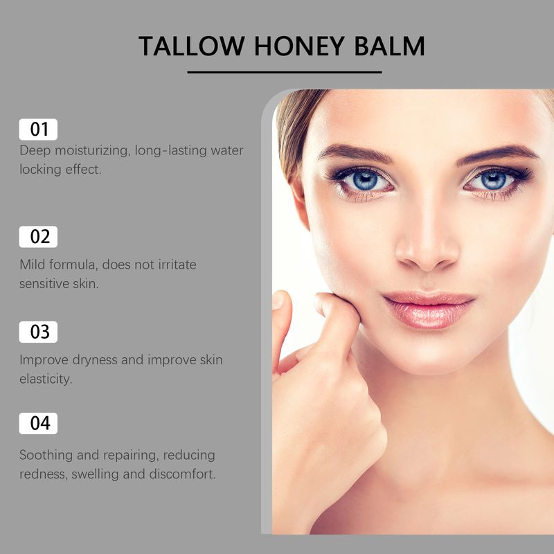 Beef Tallow Face Cream Organic Raw Honey Balm Skin Care Brightening Grass-Fed Natural Whipped Body Moisturizer Hydrating Lotion