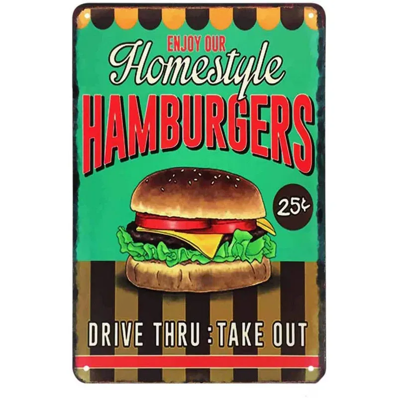 Beers Hotdogs Cola Pizza Coffee Hamburg Iced Tea Metal Tin Signs Wall Decor for Restaurant Bars Cafe Clubs Retro Posters Plaque