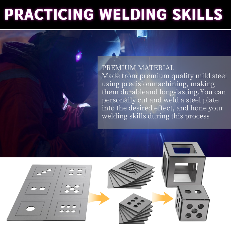 Beginner's Welding Tool Kit with TIG MIG Arc Welding Samples Low Carbon Steel Welding Plate DIY Cube Practice Supplies
