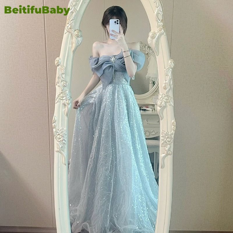 BeitifuBaby Evening Dress for Women Elegant Vintage Princess Style Luxury Off The Shoulder Sleeveless Banquet Gown Adult Dresses