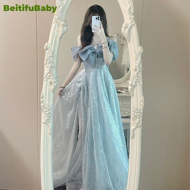 BeitifuBaby Evening Dress for Women Elegant Vintage Princess Style Luxury Off The Shoulder Sleeveless Banquet Gown Adult Dresses