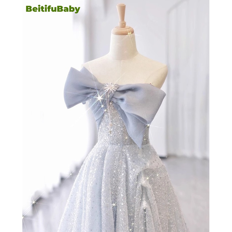 BeitifuBaby Evening Dress for Women Elegant Vintage Princess Style Luxury Off The Shoulder Sleeveless Banquet Gown Adult Dresses
