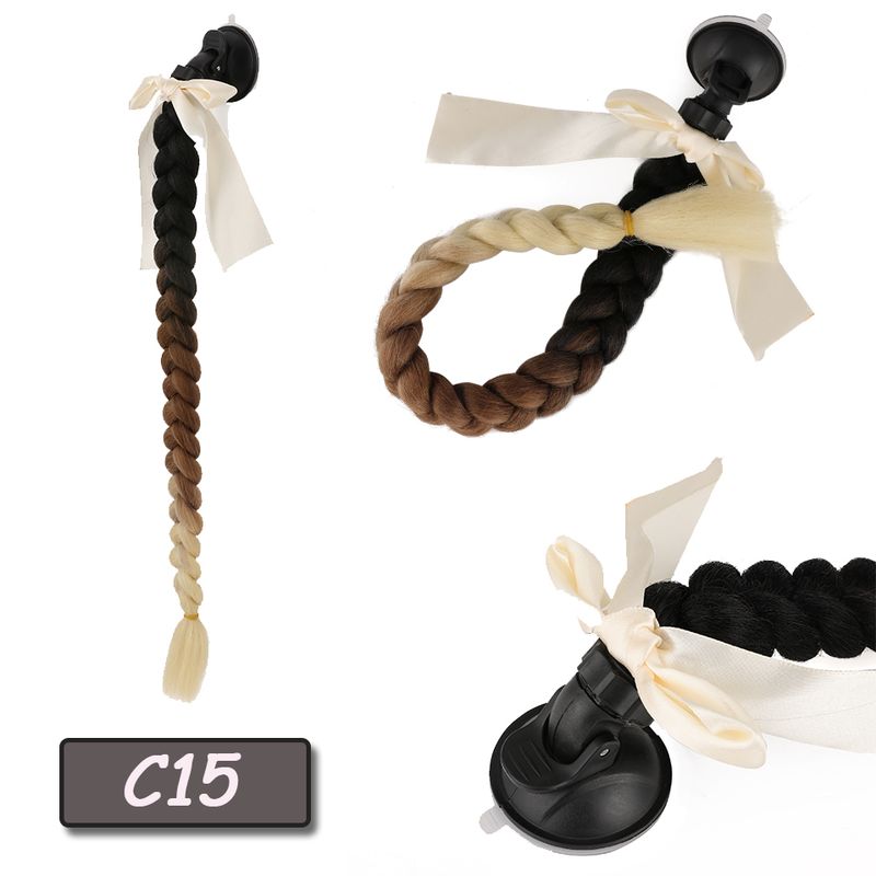 Benehair Syntheitc Helmet Pigtails Gradient Ramp Helmet Braids Ponytail Hair with Suction Cup with Bowknot for Motor Bike 1PCS