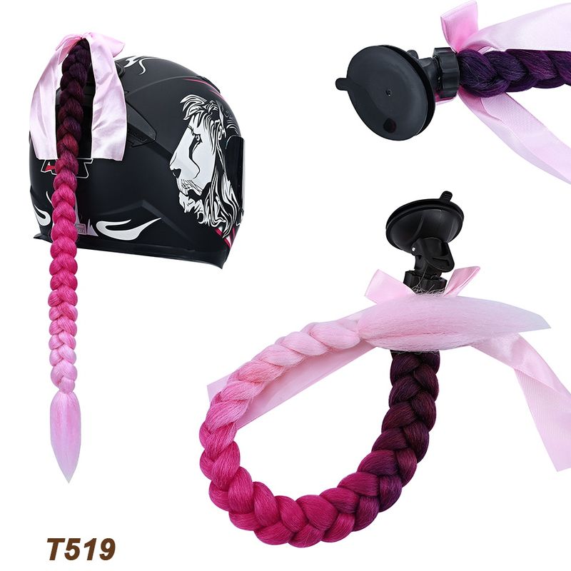 Benehair Syntheitc Helmet Pigtails Gradient Ramp Helmet Braids Ponytail Hair with Suction Cup with Bowknot for Motor Bike 1PCS