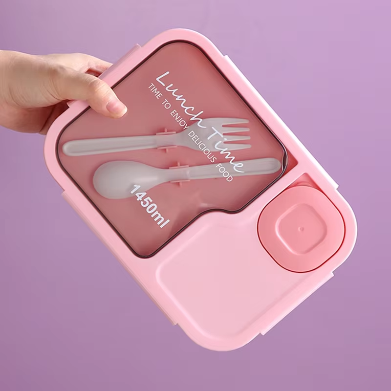 Bento Lunch Box Kid's Lunch Box Microwaveable Bento Box with Tableware Kawaii Heated 3 Grid Sandwich Snack Food Box Food Storage