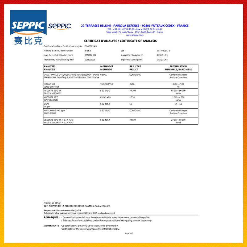 INCI: Polyacrylamide and Polyethylene Glycol Diacrylate