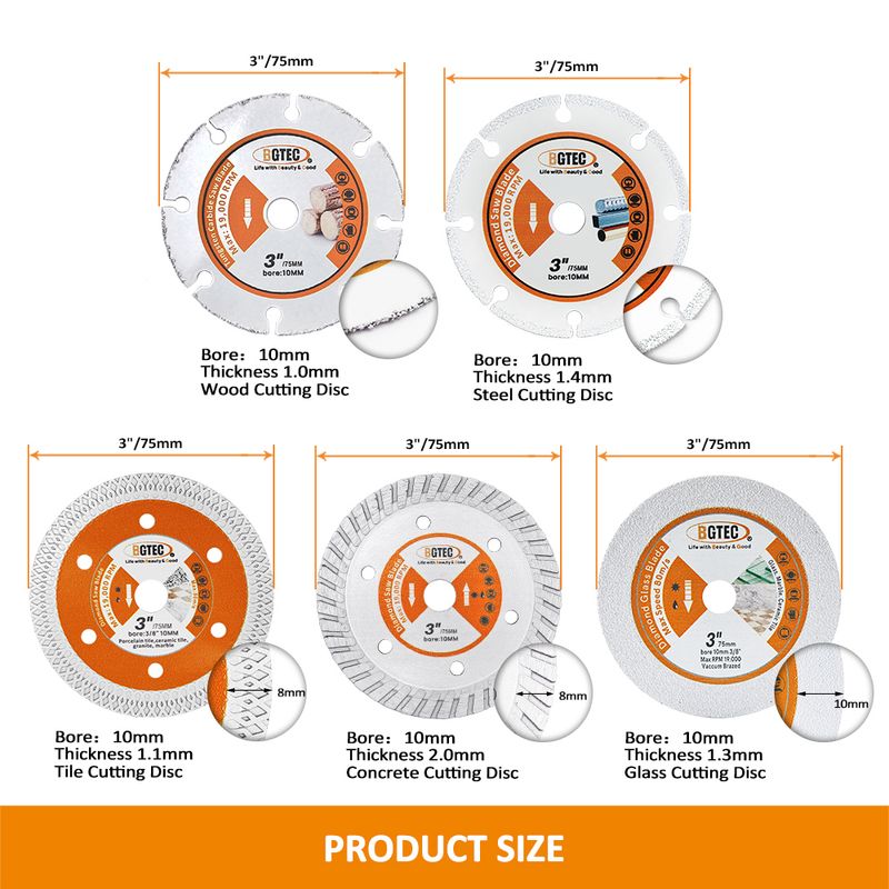 BGTEC 3inch 75mm Cutting Disc Wood Steel Concrete Granite Glass Tile Mini Angle Grinder Hand Tool Cutting Plate Saw Blade