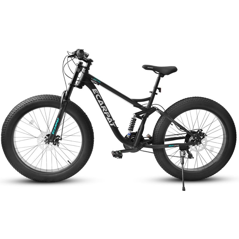 6 inch Mountain Bike, Full-Suspension 21 Speeds Drivetrain with Disc-Brake MTB Bicycle, 26*4" Fat tire Bike for Men or Women.