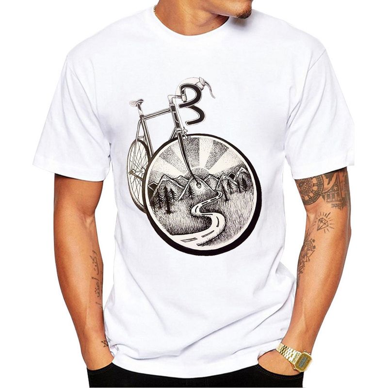 Bicycle Art Print Short Sleeve Crew Neck Top White G 2XL
