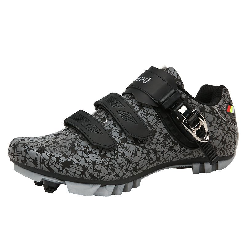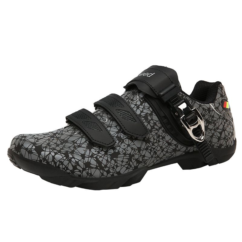 Bicycle Cycling Shoes With Lock Men And Women Luminous Reflective Mountain Road Bike Lock Shoes Power Cycling Racing Shoes Unlocked gray and black 42